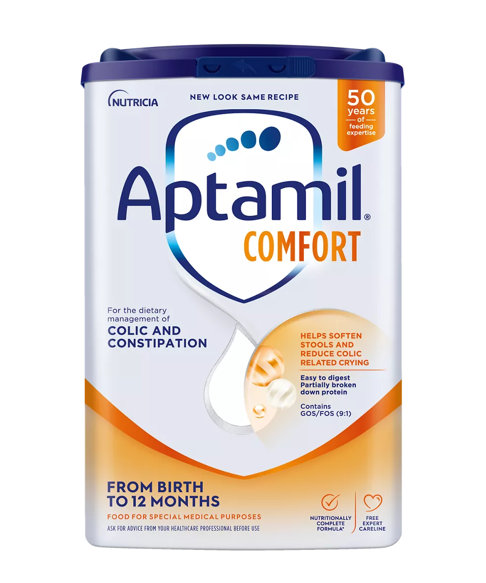 If you are concerned that your baby has colic or constipation, you should speak to your healthcare professional as Aptamil® Comfort is a food for special medical purposes and should be used under medical supervision.
