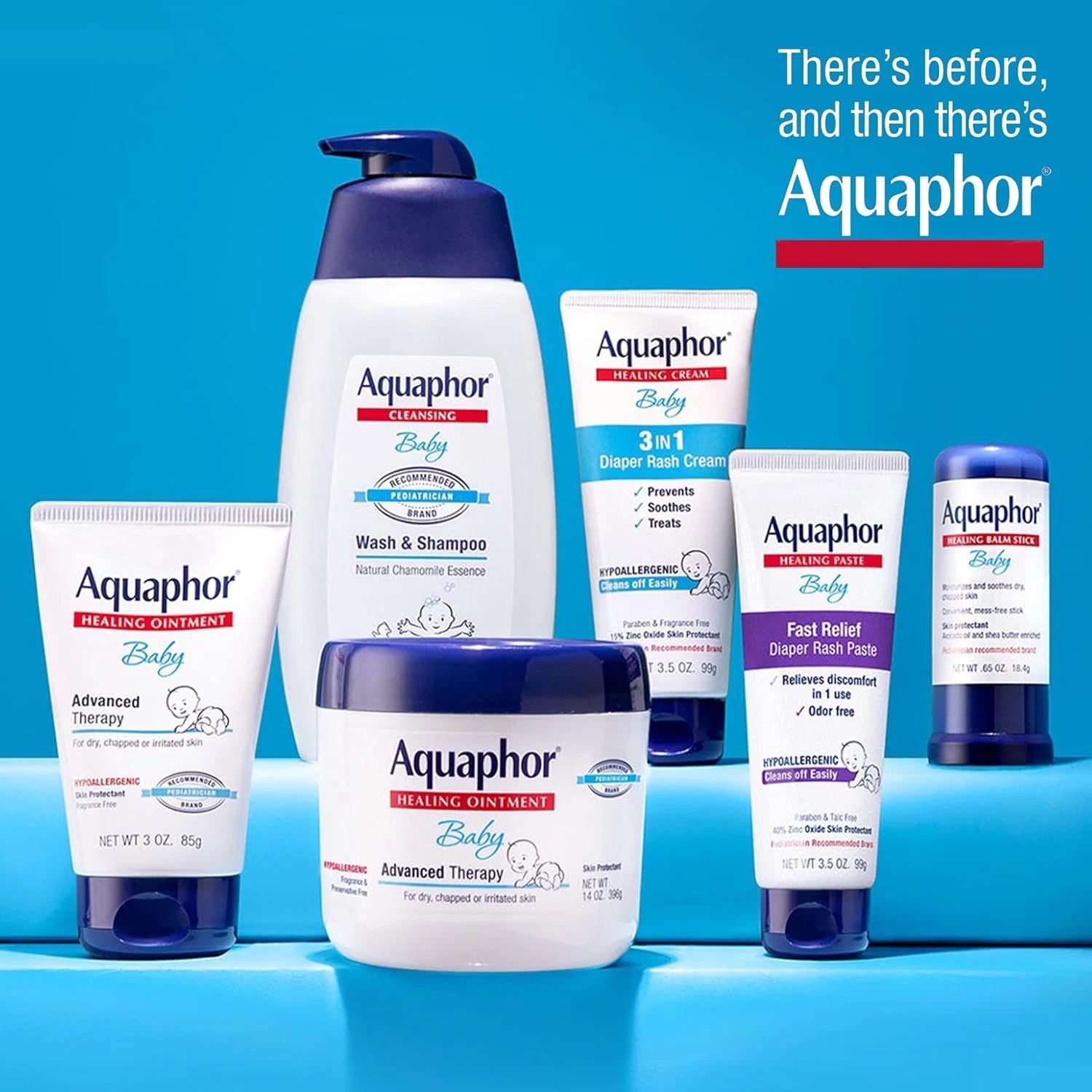 • Aquaphor Baby Skincare Essentials Gift Includes: One 16.9 oz Aquaphor Baby 2-in-1 Wash and Shampoo, one 7 oz Aquaphor Baby Healing Ointment, and one 3.5 oz Aquaphor Baby 3-in-1 Diaper Rash Cream