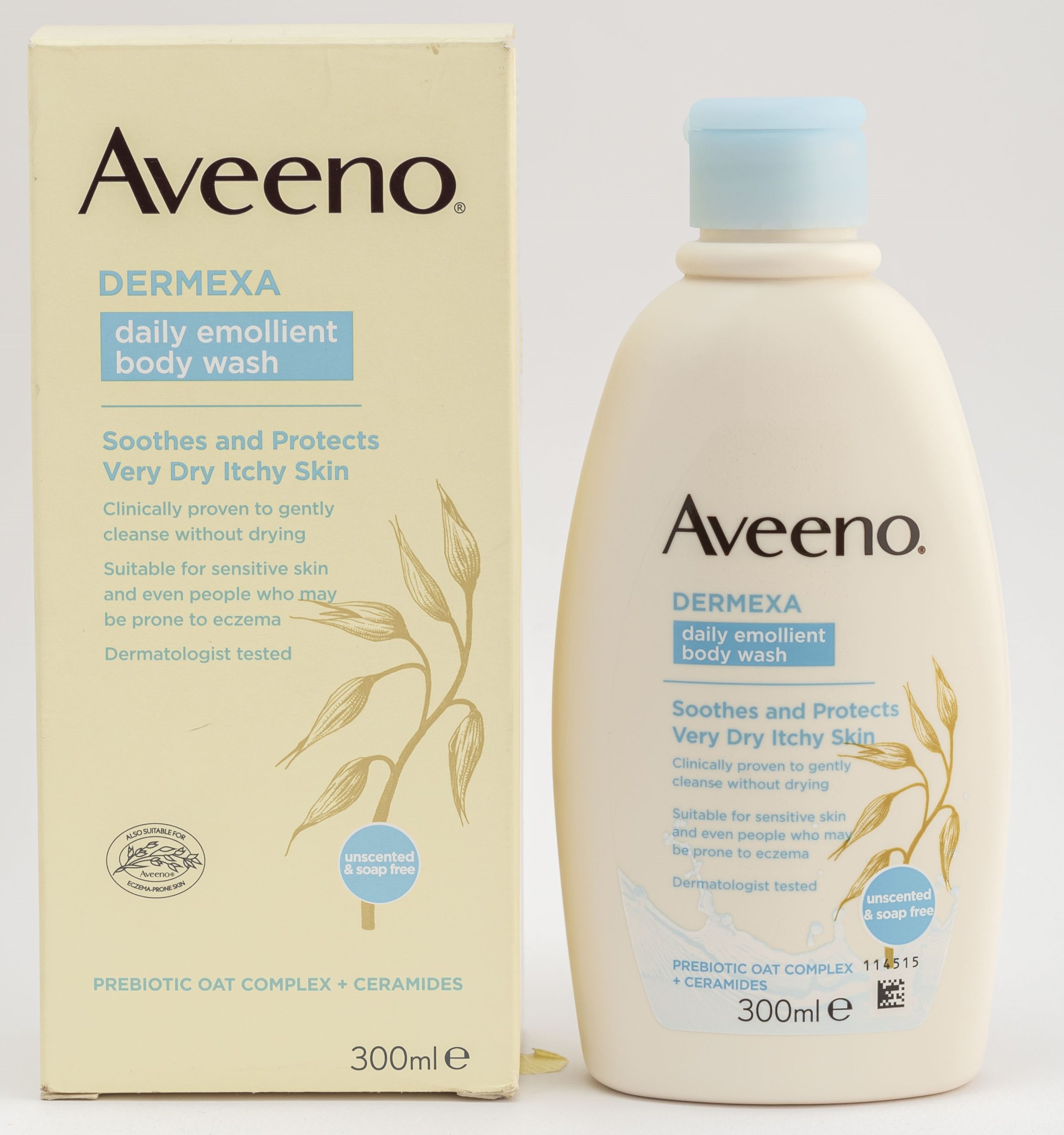 Aveeno Dermexa Daily Emollient Body Wash is formulated with soothing oat complex and ceramides . Its clinically proven, high tolerance , and vegan*  formula gently cleanses without drying and leaves the skin feeling soothed and nourished . Aveeno Dermexa Daily Emollient Body Wash soothes and protects very dry, sensitive, itchy skin. It is suitable for the whole family† and its 98% biodegradable formula  is unscented  and soap free . It is also suitable for very dry, sensitive skin and also suitable for people who may be prone to eczema.