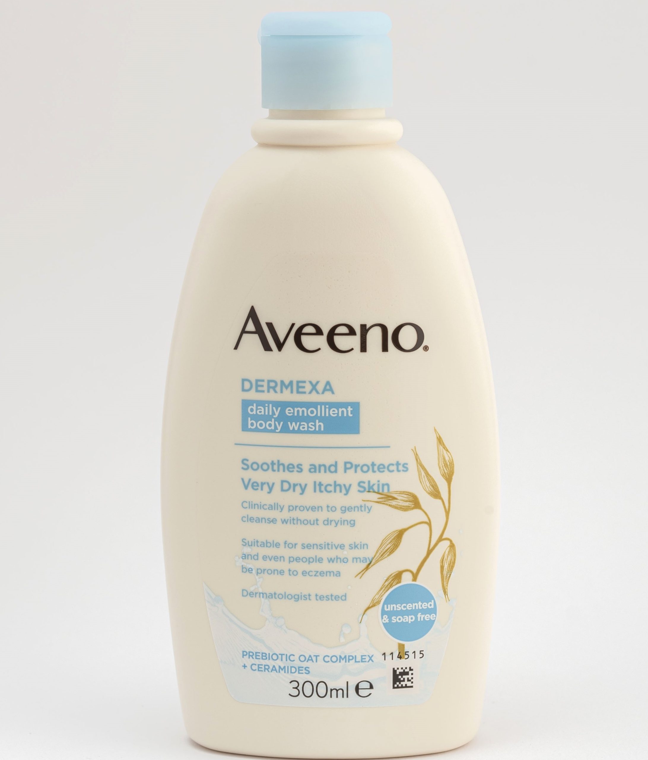 Aveeno Dermexa Daily Emollient Body Wash is formulated with soothing oat complex and ceramides.