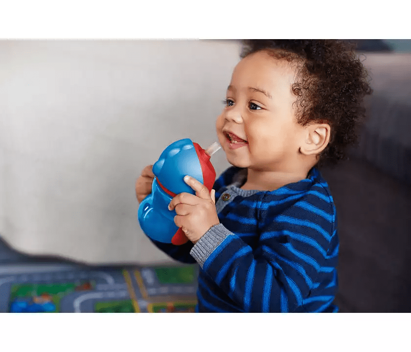 The cup’s integrated handles are ergonomically designed, making it easy for little hands to hold the cup. The soft flexible straw is gentle on gums while the cup’s lightweight small size is ideal for first straw sips.
