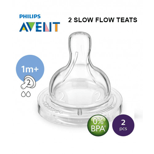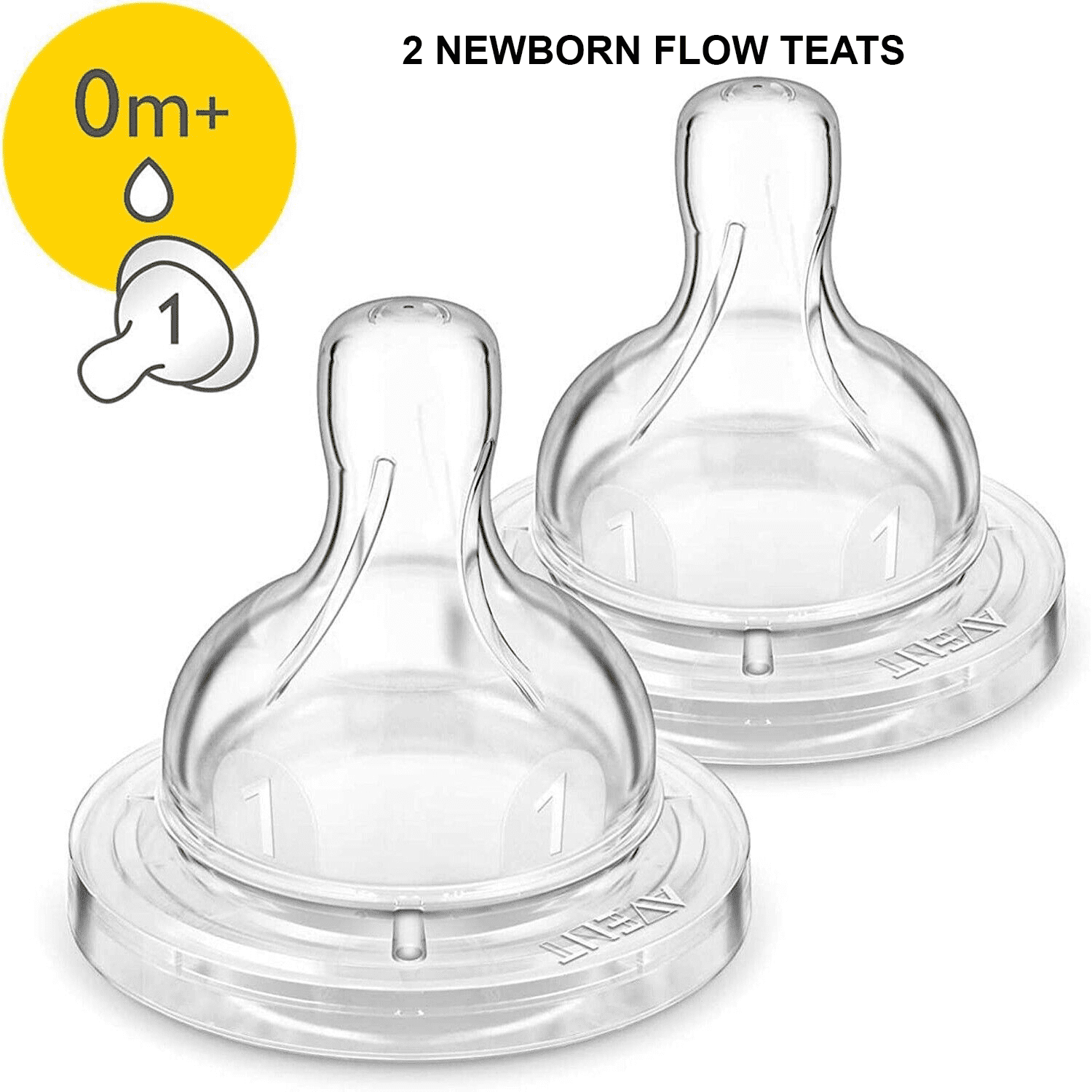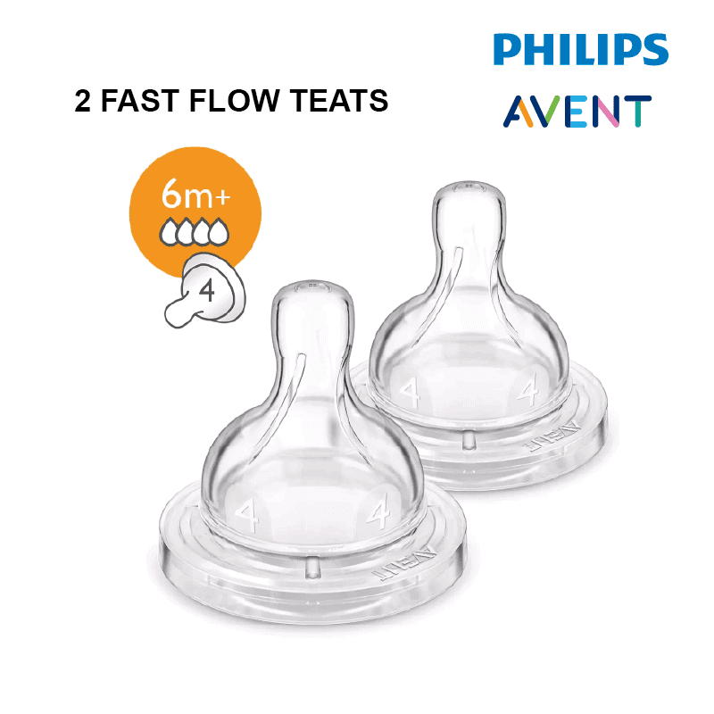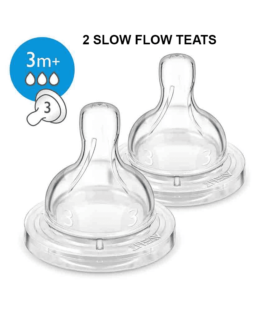 The Philips Avent Anti-colic bottle range offers different teat flow rates to keep up with your baby’s growth. Remember that age indications are approximate as babies develop at different rates. All teats are available in twin packs: Newborn, Slow, Medium, Fast and Variable Flow, and Thick feed.