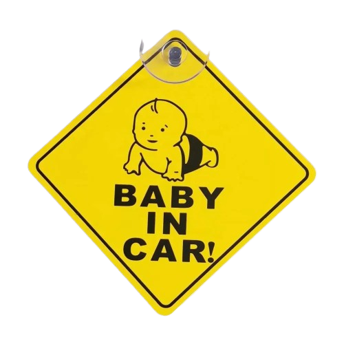 Our Baby In Car Sign is simply attached to the rear windscreen with a suction cup and will let other motorists know that you have a little one in the back seat.