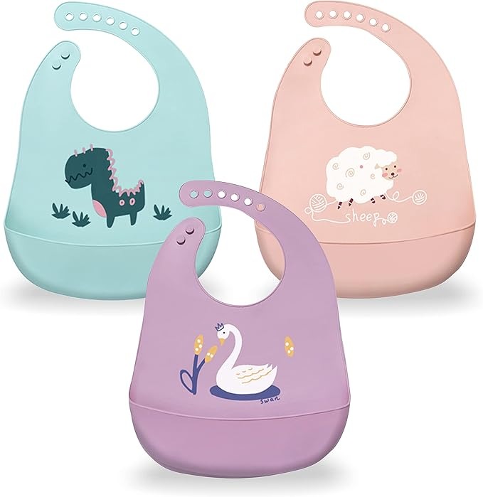 - Silicone Bibs With Food Catchers- These silicone baby bibs with pouch have deep sturdy pockets to catch the food and avoid messy eating spills, making meal time with our toddler so much easier: Use these baby food bibs for all meals!