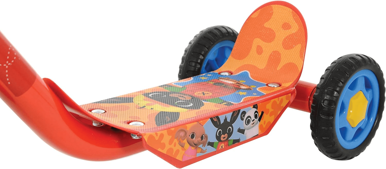 It’s a Bing Thing! An ideal first scooter for any little adventurer, the Deluxe Tri-scooter boasts an array of features. The fully printed anti-slip foot plate not only ensures safety but features cool iconic graphics and has smooth sides to prevent knocks to ankles.