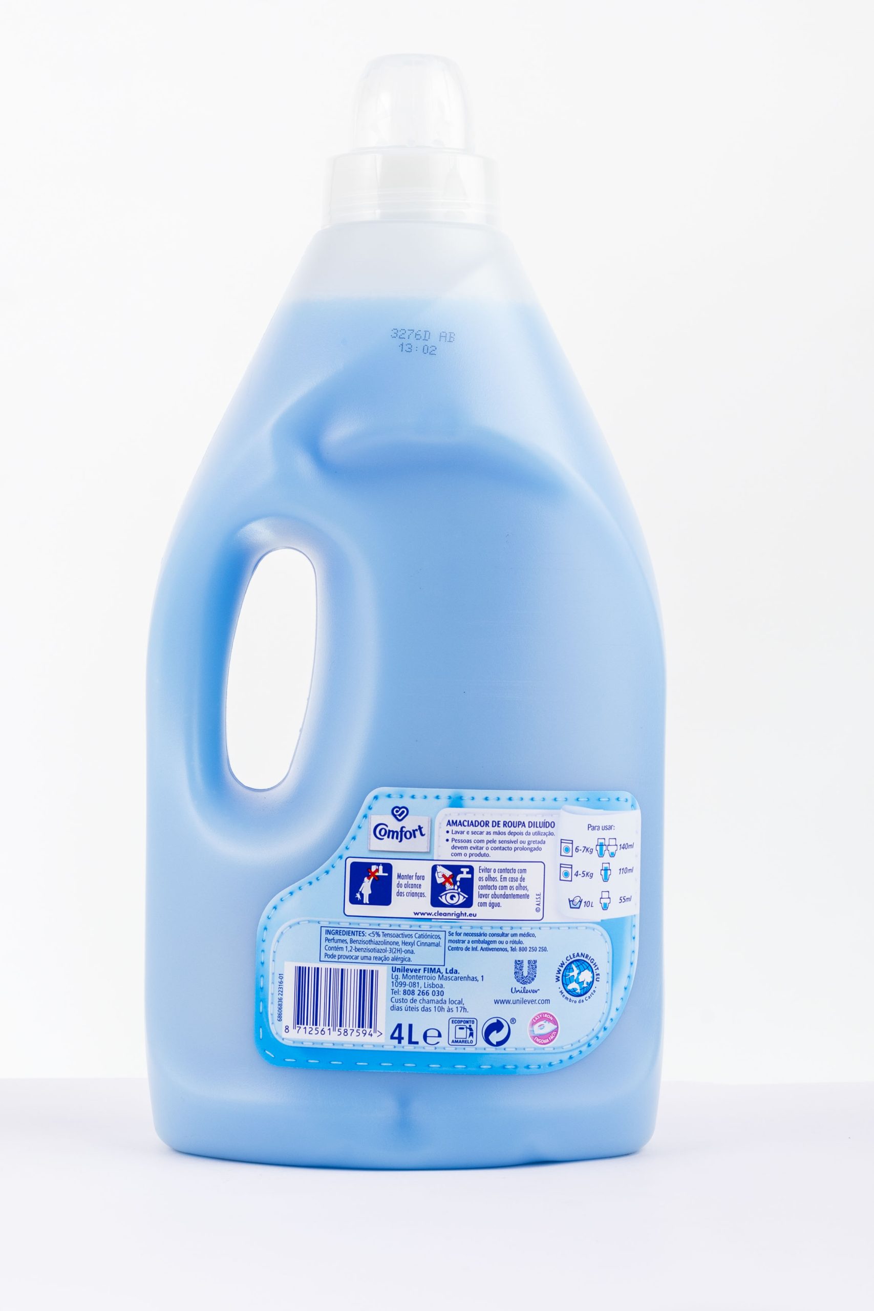 This bottle contains 4L of Comfort Fabric Conditioner blue