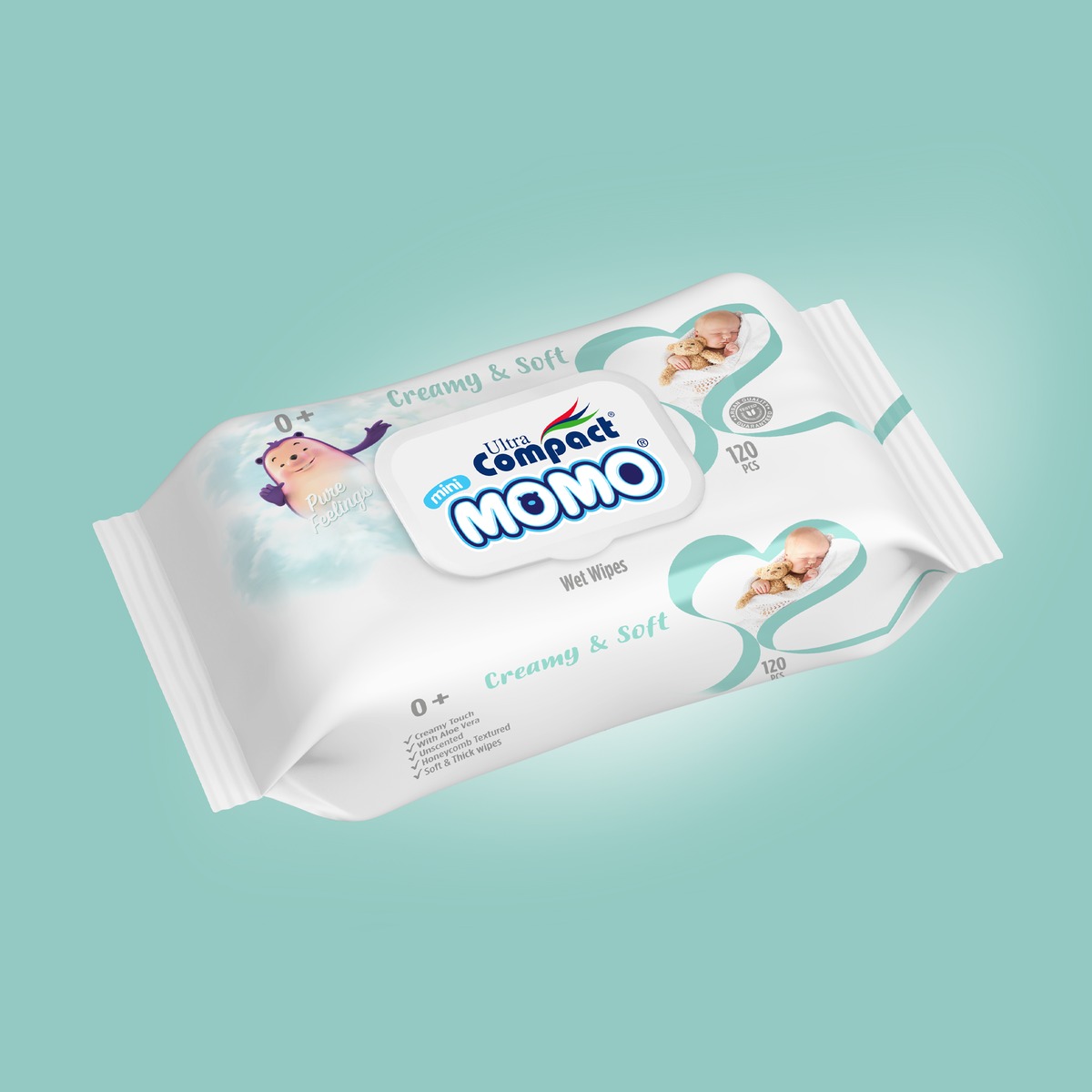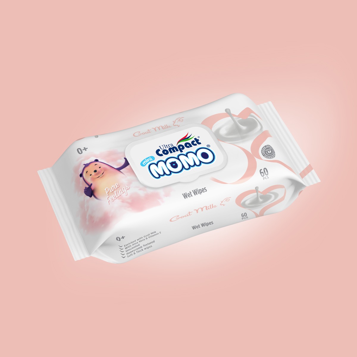 Ultra Compact Momo Baby Wet Wipes come in varieties, including Multi Vitamins, Goat Milk and Creamy & Soft.