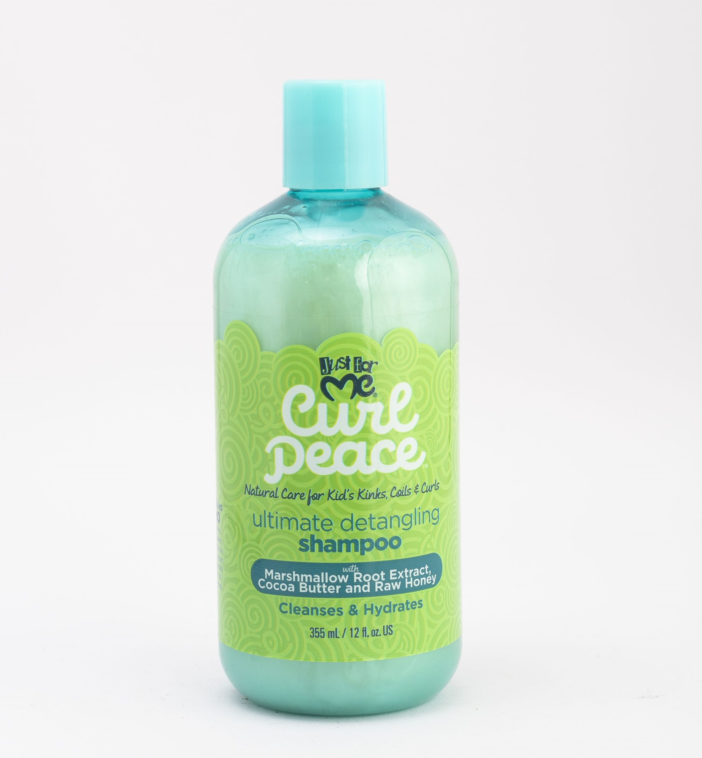 Just For Me Curl Peace Ultimate Detangling Shampoo natural care for kid’s kinks, coils and curls. With Marshmallow root extract, Cocoa Butter and Raw Honey. Helps cleanses and hydrates.