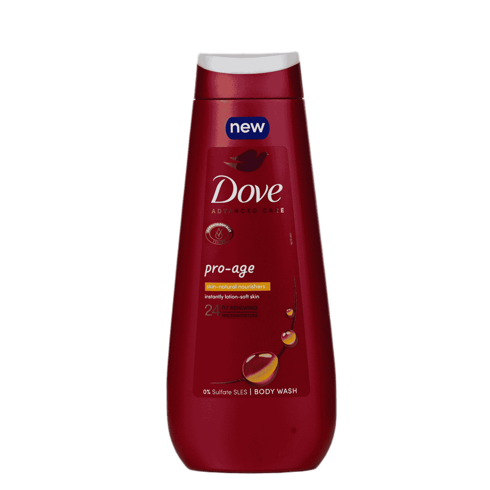 Rediscover youthful radiance with Dove Pro Age Body Wash. Gently cleanses and nourishes mature skin, leaving it soft and supple.
