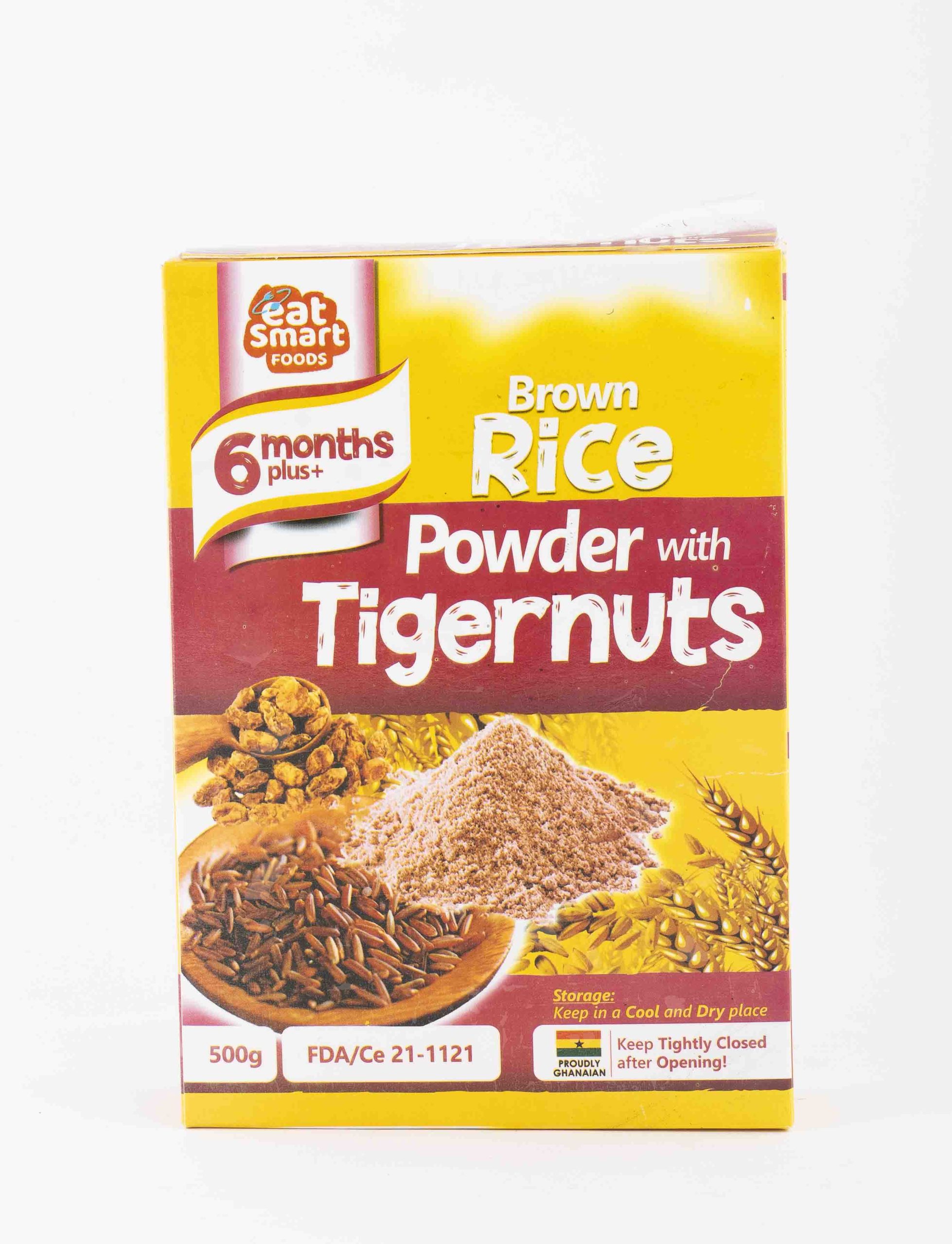 Eat Smart Foods Brown Rice Powder with Tigernuts a rich combination of Brown Rice with key essential ingredients.This product is formulated to ensure that children from the ages of 6m to the whole family get access to a daily portion of their proteins,fat,carbohydrates,Energy and other essential nutrients after enjoying its goodness.