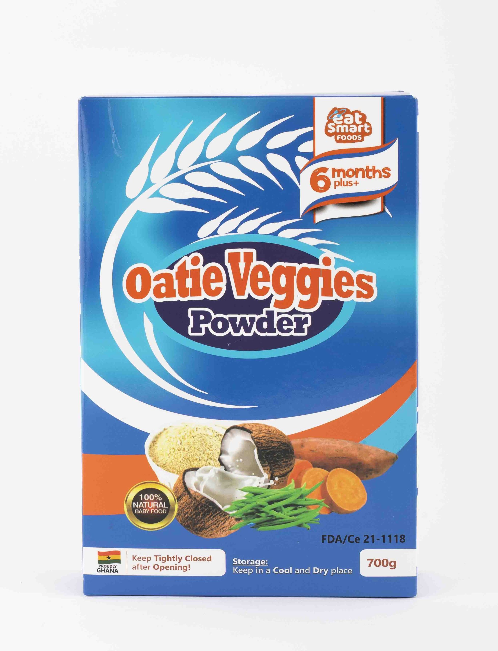 Eat Smart Foods Oatie Veggies powder is a rich combination of rich oats and Vegetables with key essential ingredients.This product is formulated to ensure that children from the ages of 6m to the whole family get access to a daily portion of their proteins,fat,carbohydrates,Energy and other essential nutrients after enjoying its goodness.It is smooth ,natural,tasty and gives you a smart boost for the day .It is great for porridges,smoothies,pancakes,banku,bakes ,pottage and many more