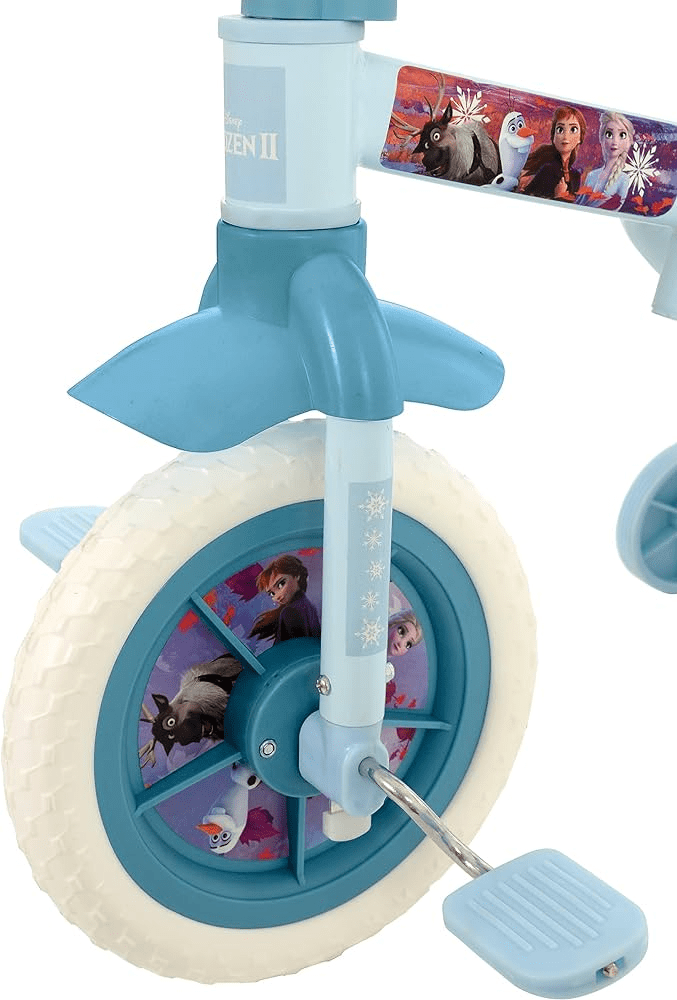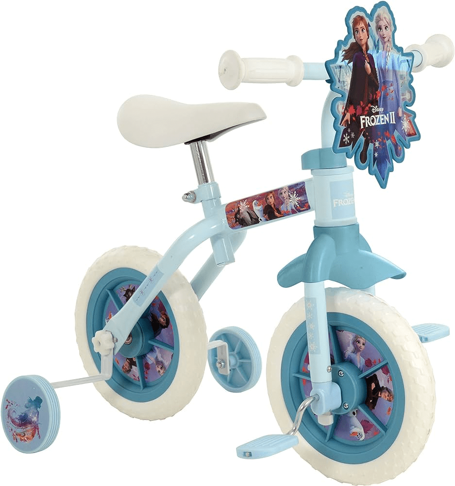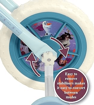 A perfect first bike for any princess to be, with beautiful character graphics, the 2-in-1 converts easily from a training to a balance bike in a matter of minutes. Stage one is the pedal bike where riders can get Used to pedalling and steering with the aid of rear stabilisers. Stage two is the balance bike mode where pedals and stabilisers are removed as core coordination, strength and skill improve to allow ‘push off’ And balance via freewheeling. The wide Eva moulded wheels with MAG wheel inner provide extra stability and the deep tread tyres offer a strong yet comfortable ride with excellent grip. Both saddle and handlebars are adjustable in height to suit children as they grow and gain in confidence and a soft saddle and hand grips provide additional comfort whilst learning