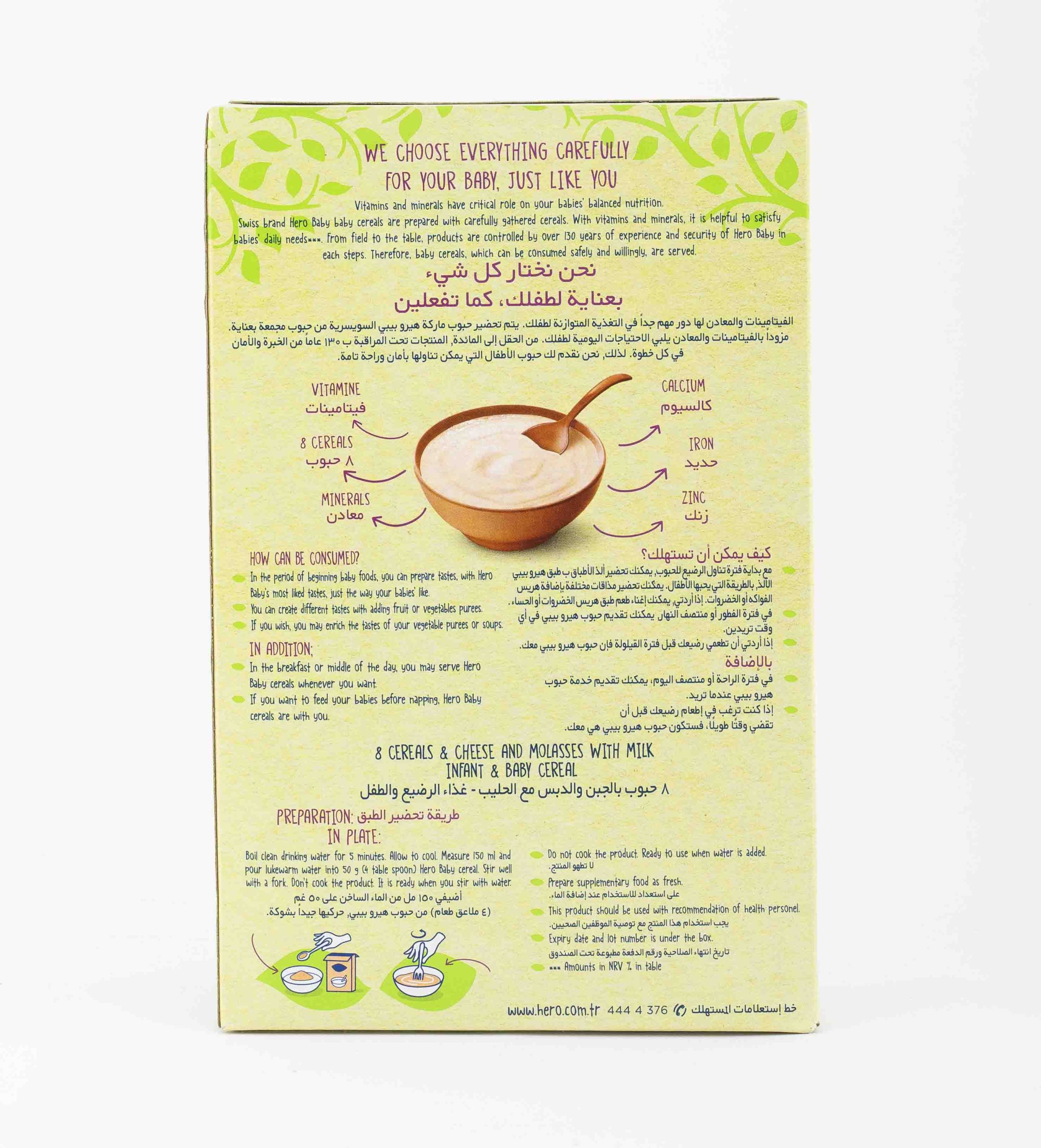 Home FOOD & FEEDING ACCESSORIES Baby Food Hero baby 8 cereals cheese & molasses 200g 6months+