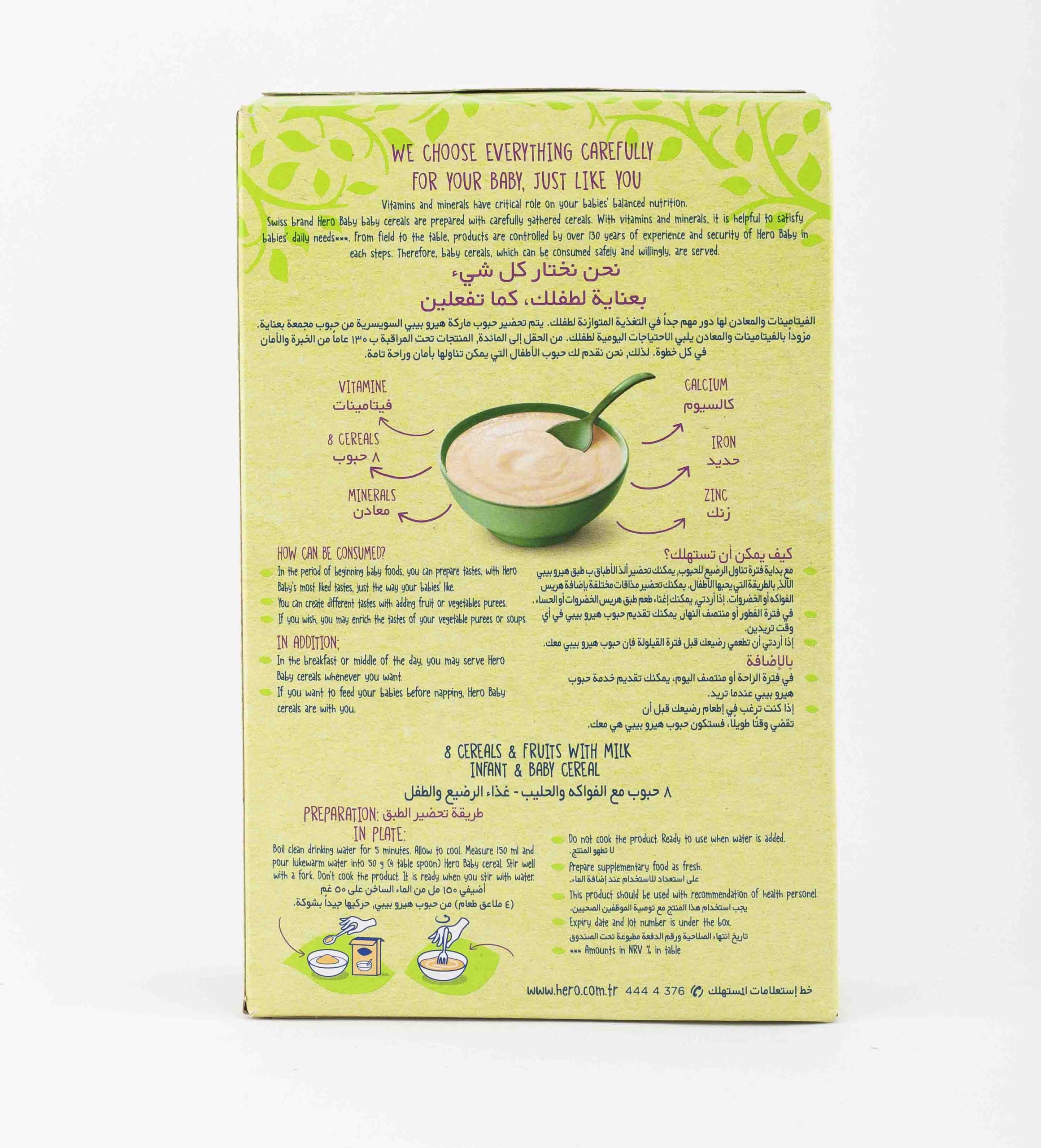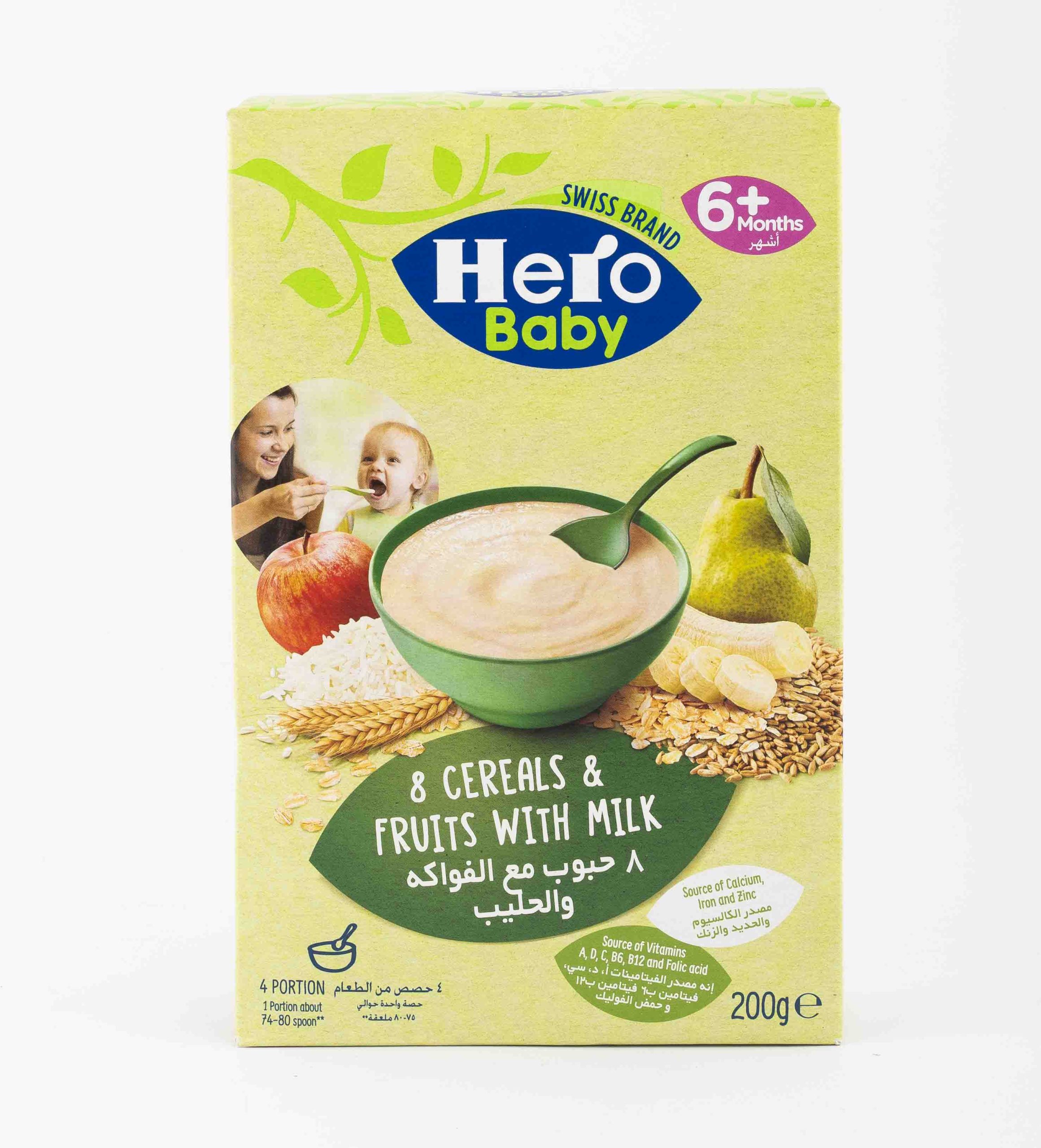 Home FOOD & FEEDING ACCESSORIES Baby Food Hero baby 8 cereals & fruits with milk 200g 6months+