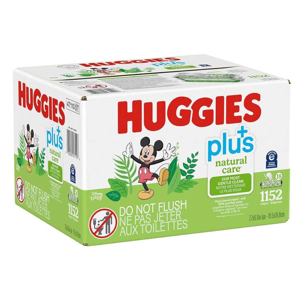 Huggies Natural Care Sensitive Baby Wipes are plant-based wipes, made with 99% purified water and 1% skin essential ingredients for a gentle clean. Infused with aloe & vitamin E, the unique base sheet locks-in and absorbs the mess to help keep baby’s skin clean and moisturized.