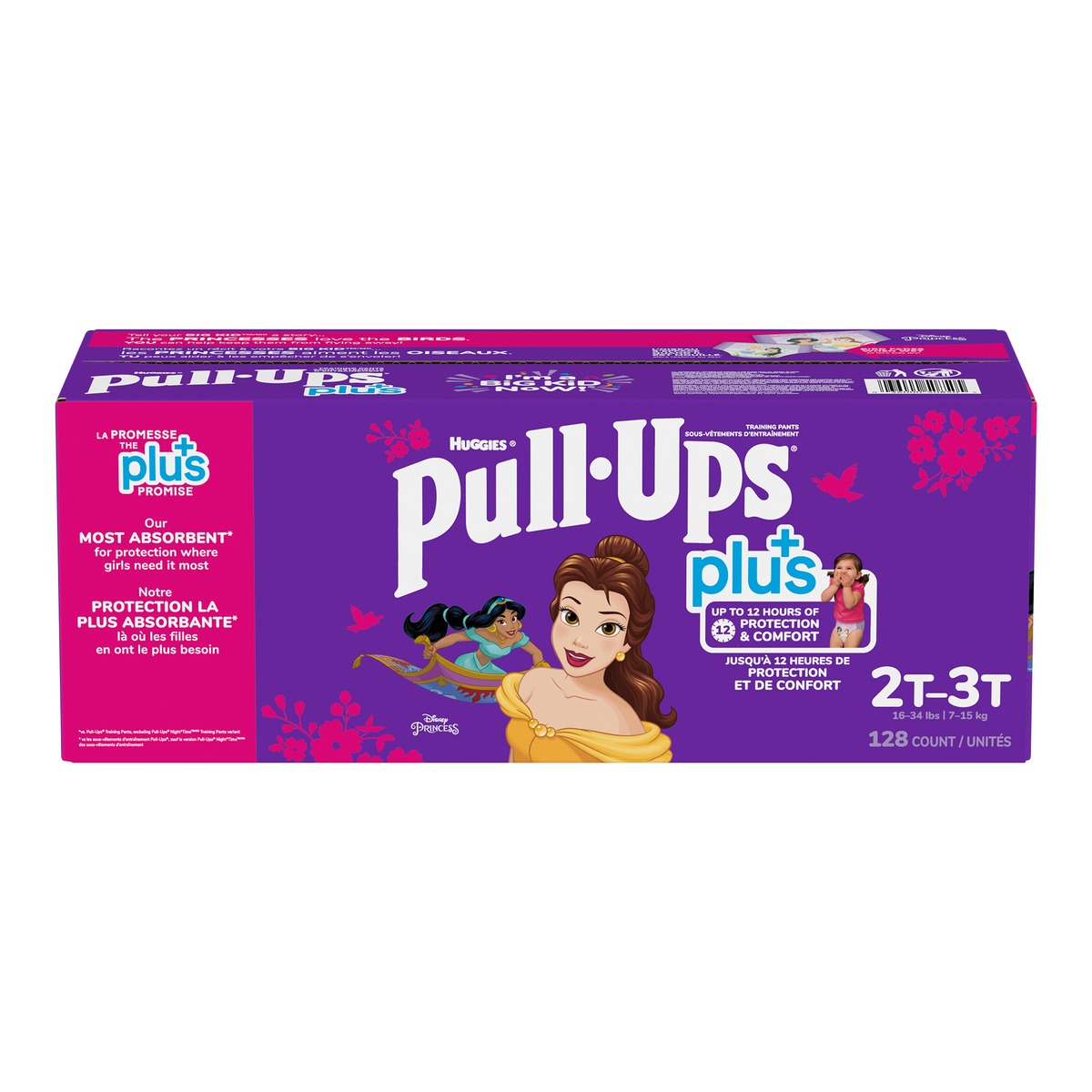 Huggies Pull-Ups Potty Training Pants help teach toddlers potty training and offer reliable protection where they need it most. Sides are stretchy for easy up and down, like underwear, to help kids learn how to put them on and take them off–plus, easy-open sides mean quick and easy changes when you need it.