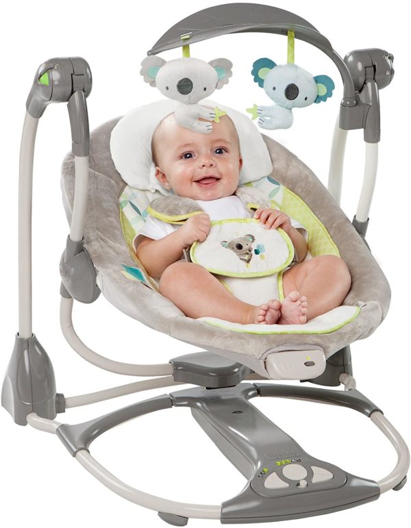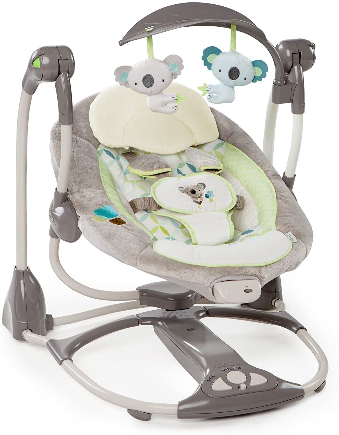 Ingenuityâ„¢ ConvertMe Swing-2-Seatâ„¢ in Brightonâ„¢ is two amazing seats in one! This swing converts effortlessly to a seat with soothing vibrations. Entertain baby with 5 swing speeds, 8 melodies and 3 natures sounds. A pivoting leaf-like toy bar offers 2 plush toys and 3 loops for attaching more toys.
