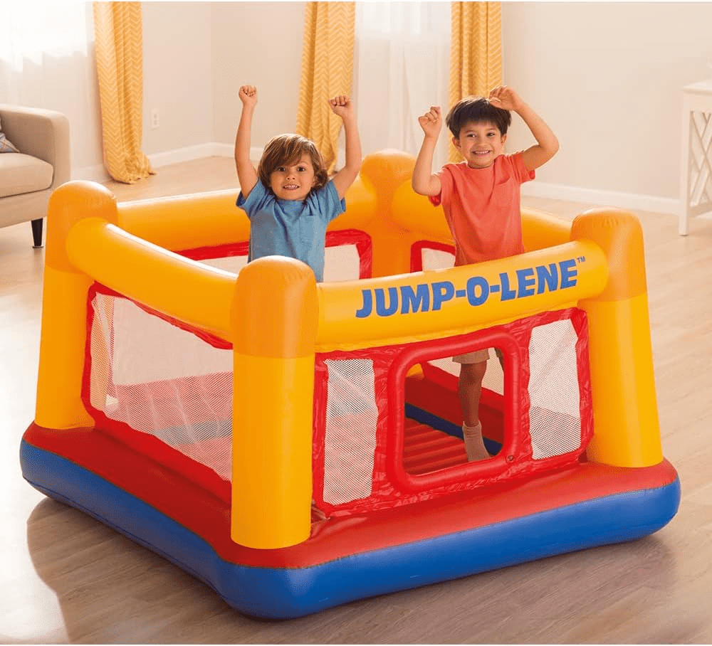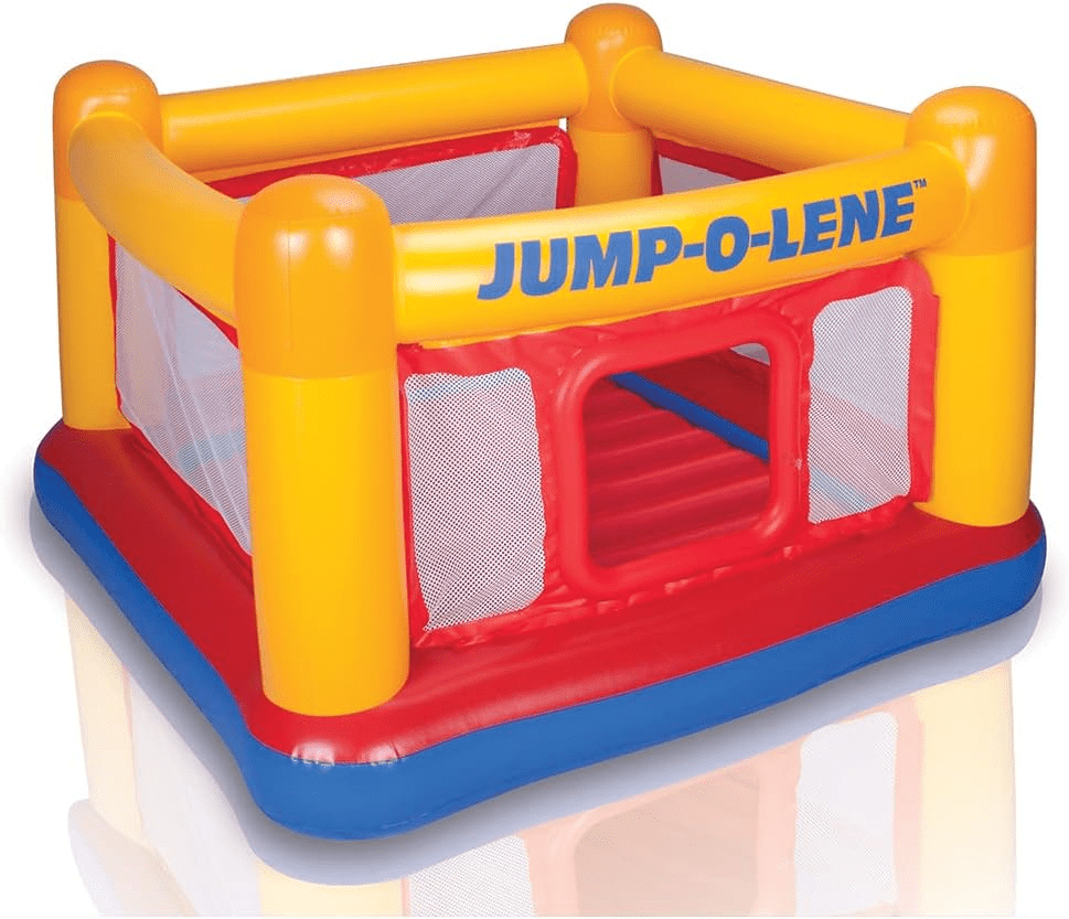 Perfect for jumping and playing, the Intex Playhouse Jump-o-Lene is a great play gym for young kids to enjoy for hours on end. This colorful bouncer comes equipped with a crawl-thru door for kids to easily crawl inside. Reinforced net sidewalls provide a safe enclosed play area. An inflatable floor and high sidewalls provide a safe bouncing platform.