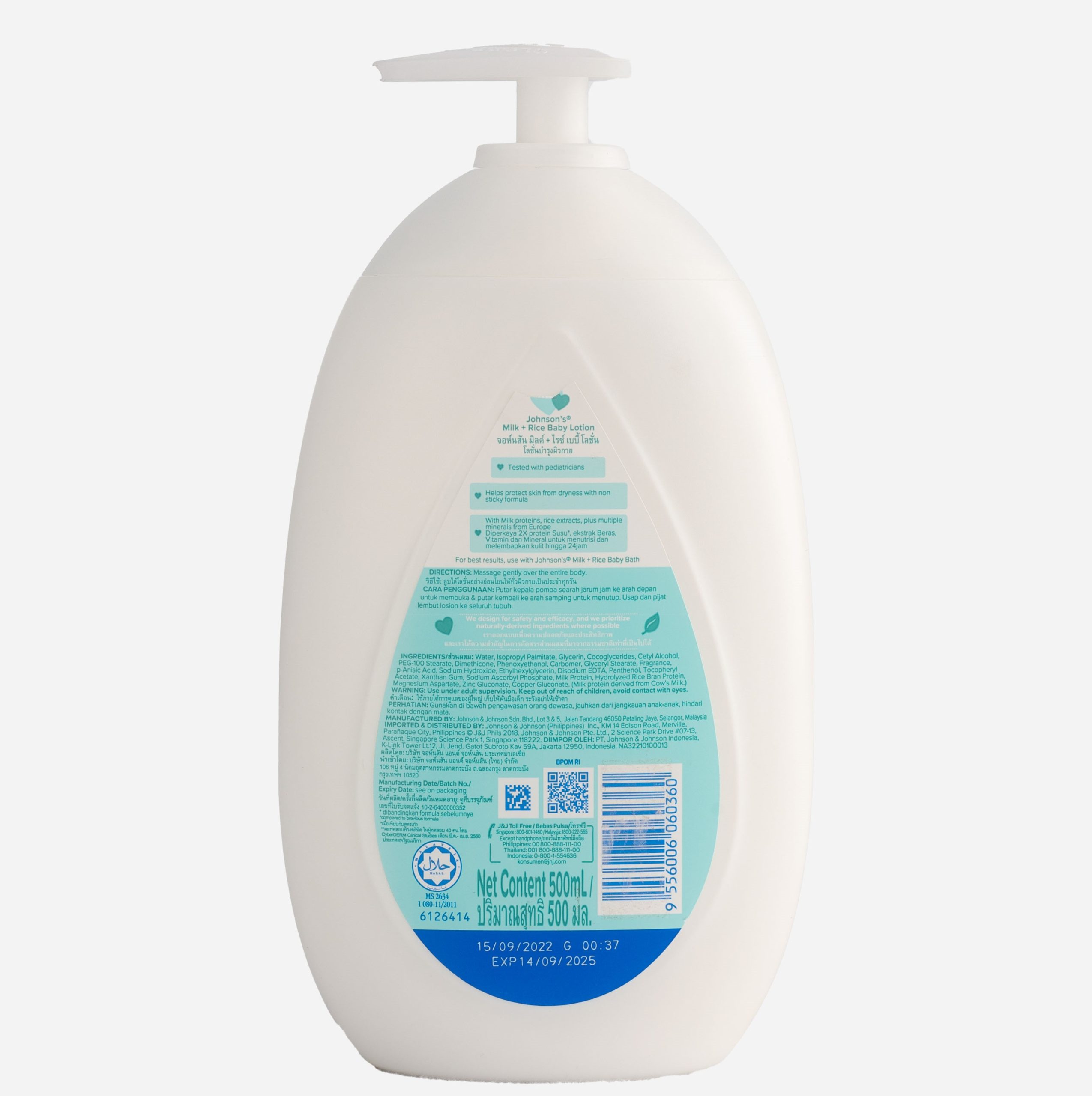 Johnsosn Milk +Rice Lotion 500ml clinically proven mild. Contains the rich combination of Milk Proteins and Rice Nutrients, plus essential vitamins to help complete skin nourishment.