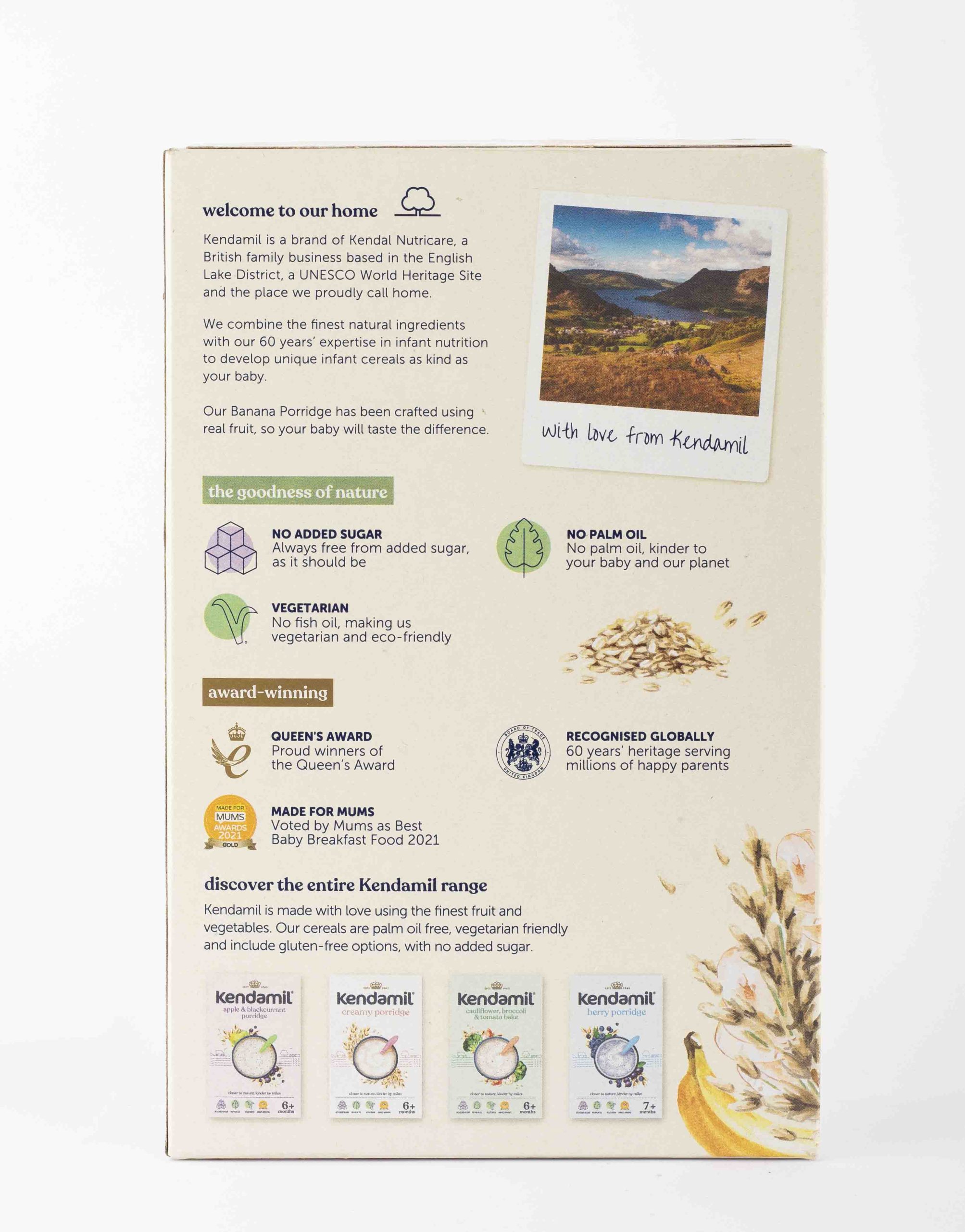 The goodness of nature No added sugar Always free from added sugar, as it should be Vegetarian – No fish oil, making us vegetarian and eco-friendly No Palm Oil – Kinder to your baby and our planet Closer to nature, kinder by miles Kendamil is a brand of Kendal Nutricare, a British family business based in the English Lake District, a UNESCO World Heritage Site and the place we proudly call home.
