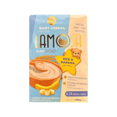 Lamosa Cereal Rice and Banana is a nutritious and delicious first food option for babies aged 6–24 months. Carefully formulated to meet the specific nutritional needs of infants, this creamy cereal combines wholesome rice with the natural sweetness of banana.