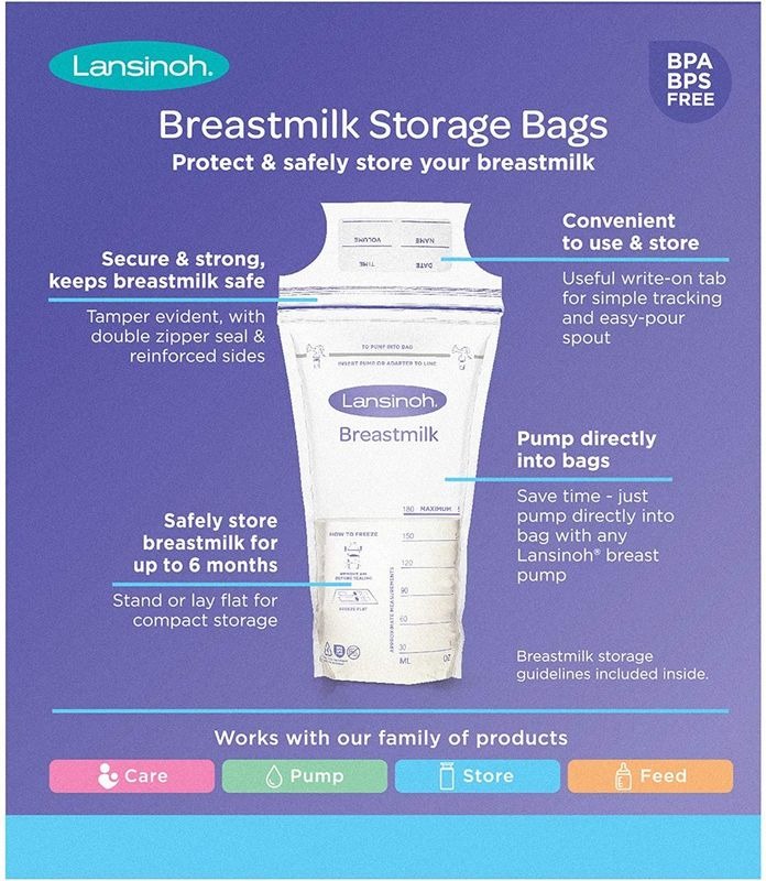 NEW: You can now pump directly into our Lansinoh’s Breastmilk Storage Bags from any Lansinoh breast pump, just ensure that your Lansinoh Breastmilk Storage Bag has white and purple flowers and a white line above the logo. If your bag does not have this design, it is not compatible with pumping directly into the bag.