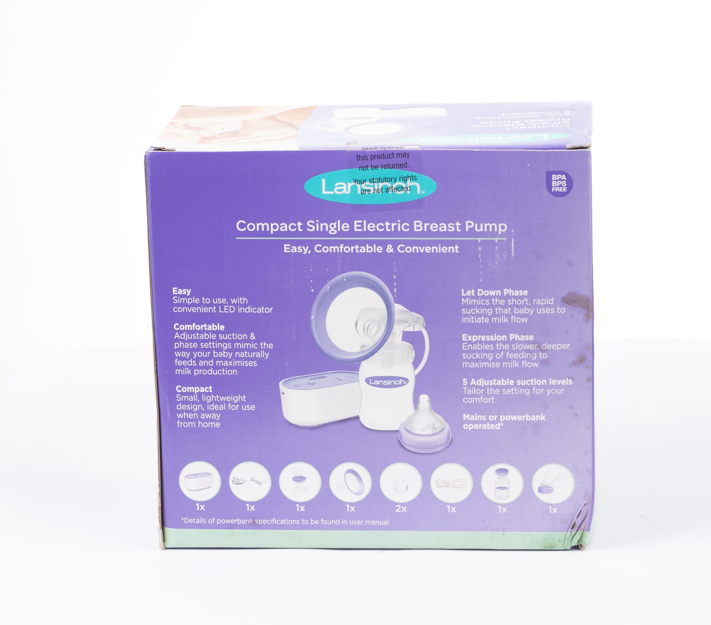 - Hygienic Design: The closed system helps prevent milk from entering the tubing, making it simple to use with fewer parts to clean. Easily attaches to Lansinoh Breastmilk Storage Bags and Bottles, saving time and preventing messy milk transfers or spillsWhat’s Included: The Lansinoh Compact Single Electric Breast Pump includes the base unit and power cord, 2 breast pump valves, a ComfortFit breast cushion (size standard 25mm) and a NaturalWave Slow Flow Teat