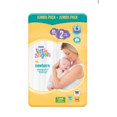 - Asda Little Angels Nappies Newborn Size 2 have received the prestigious Mother & Baby Awards 2021, with a Silver award for Best Performance Disposable Nappy or Nappy Range and a Gold award for Supermarket of the Year. Rest assured, these nappies have been dermatologically accredited by the Skin Health Alliance, guaranteeing their gentle and safe nature for your baby’s sensitive skin
