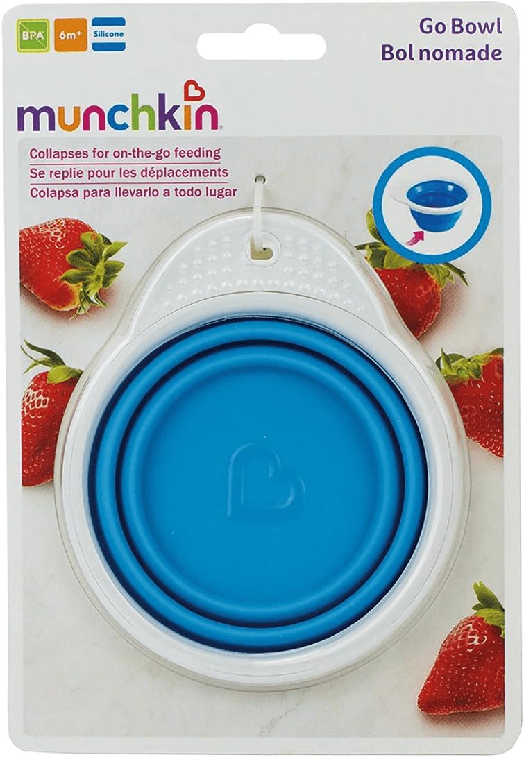 The premium, non-toxic, silicone go bowl by Munchkin springs into action for snack time fun and quick dining, at home or on the go. This mealtime multi-tasker effortlessly expands from a flat, half-inch disc into a handheld bowl.