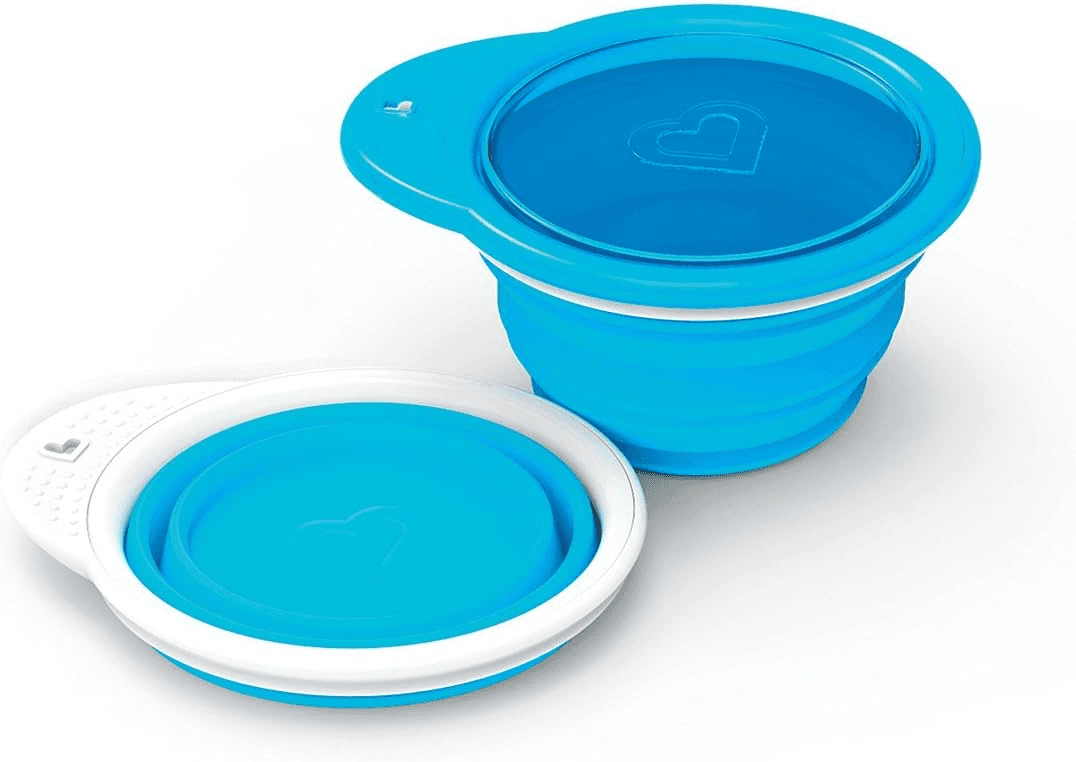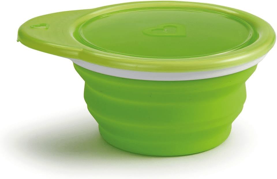 The premium, non-toxic, silicone go bowl by Munchkin springs into action for snack time fun and quick dining, at home or on the go. This mealtime multi-tasker effortlessly expands from a flat, half-inch disc into a handheld bowl. After a visit to the dishwasher, it collapses back down to fit easily into any crowded drawer, cabinet, or lunch tote. Kids and parents love the pop-up action and it’s almost as addictive as bubble wrap. Safe materials and simple storage make this a collapsible bowl.