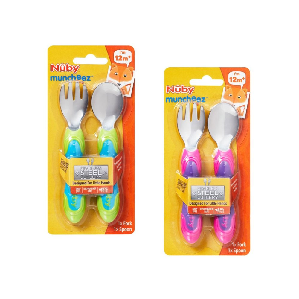 Home FOOD & FEEDING ACCESSORIES Feeding and Nursing Nuby muncheez stainless steel cutlery 12months+