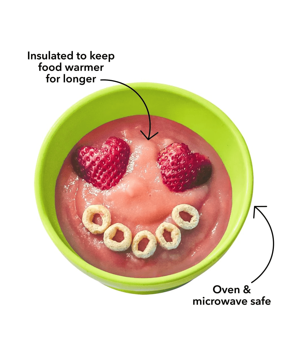 - One-piece suction base keeps bowl in place making it easier for babies to eat more and wear less of their meals