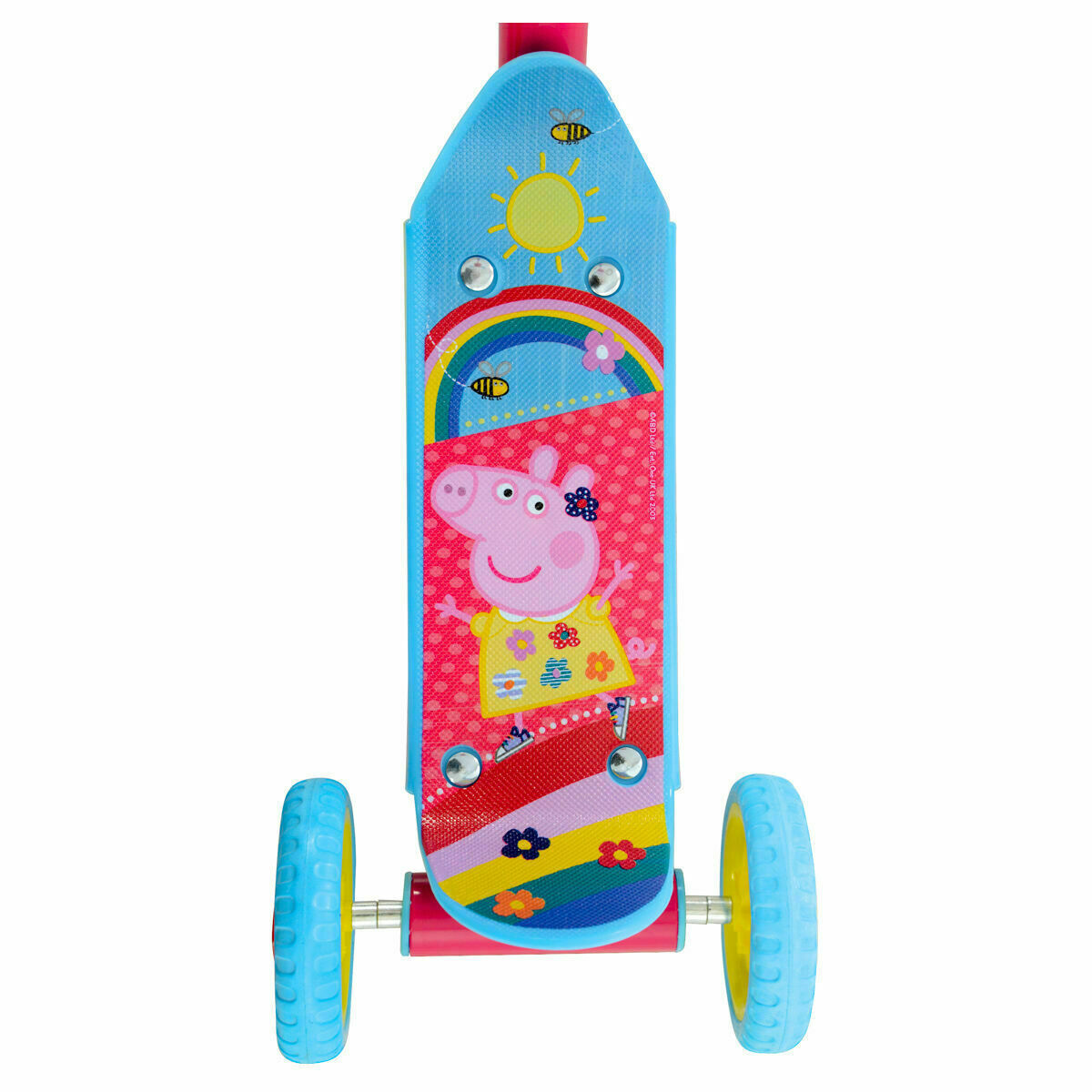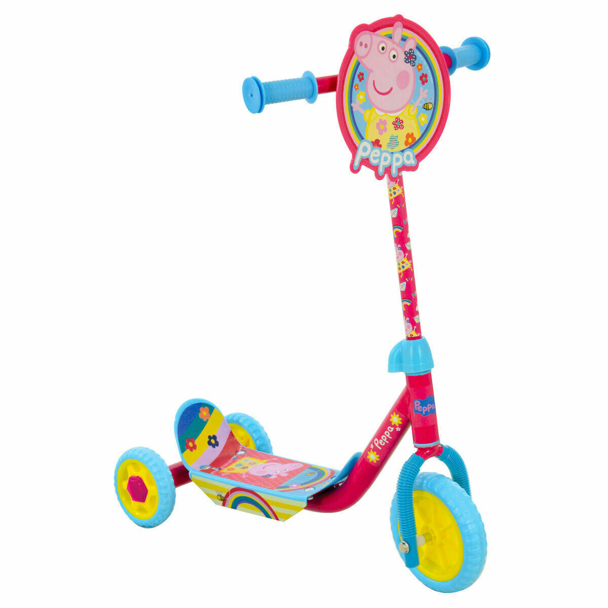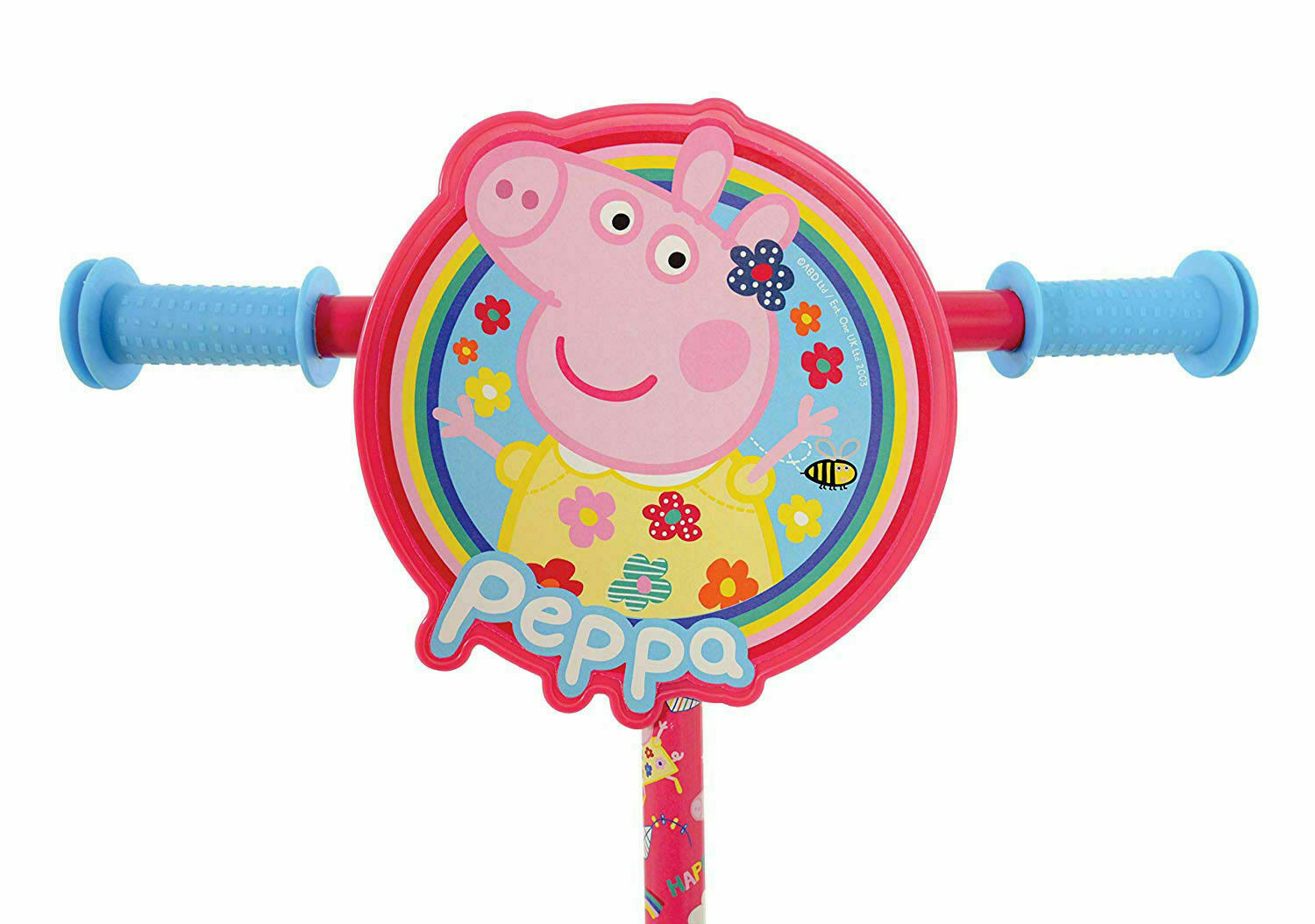 Adorable Peppa Pig tri-scooter perfect for any Little Peppa fan!. Sturdy three wheel scooter gives extra stability for beginners, comes decorated with cute Peppa graphics and plaque. Colour printed anti-slip footplate. 15cm (6″) front wheel with puncture proof tyres, 10cm (4″) rear wheels with puncture proof tyres. Handlebar adjusts to suit. Comes with cute character plaque and graphics. Recommended for ages 3+ years.