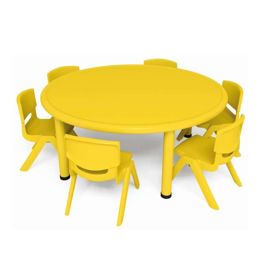 This Preschool Classroom Round Table is made of durable plastic materials, suitable for various educational settings, including kindergartens and daycare centers.
