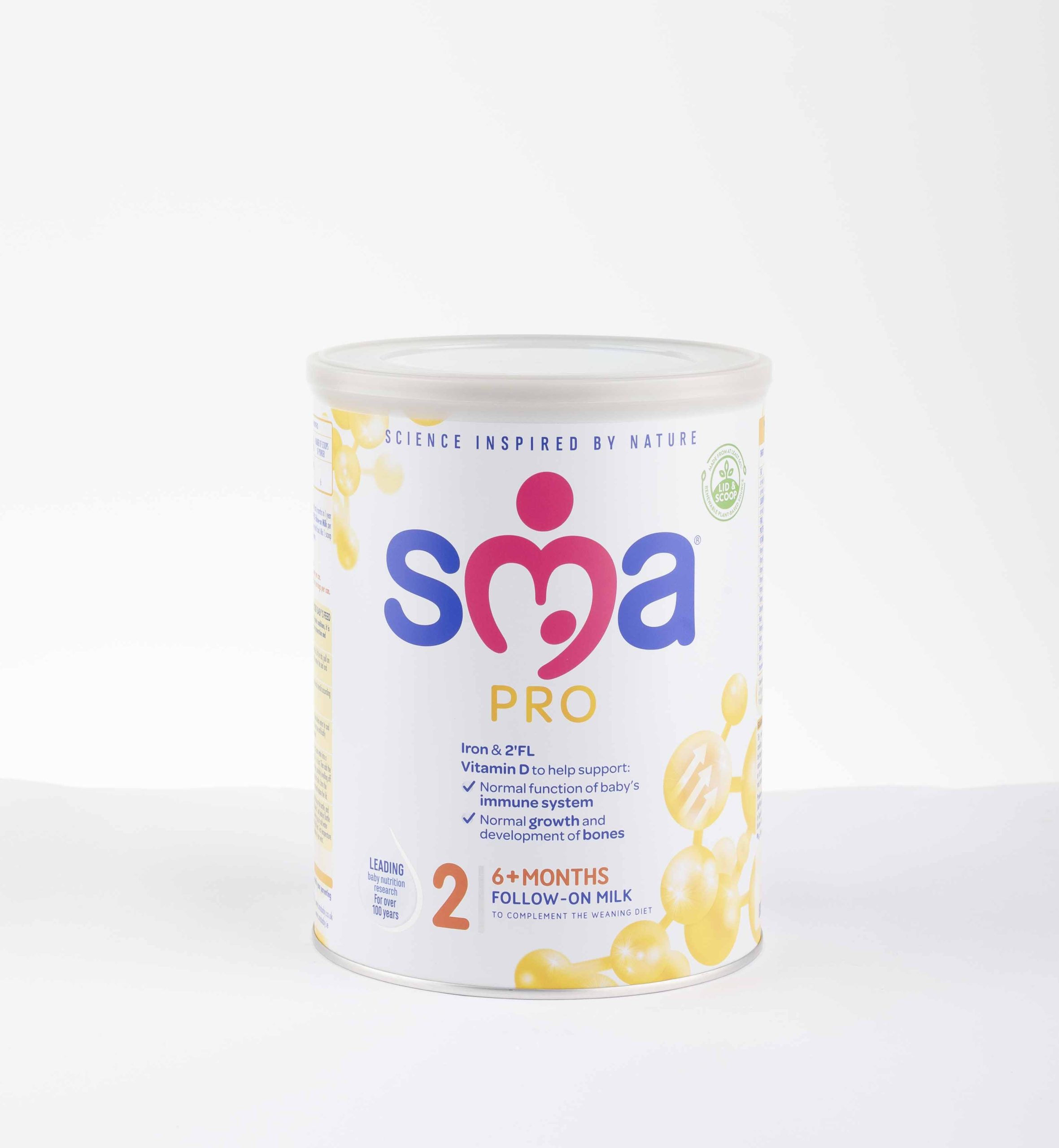 SMA PRO Follow-on Baby Milk is tailored for babies from 6 months as part of a varied weaning diet. SMA PRO Follow-on Baby Milk is enriched with iron to help support normal cognitive development. It contains 100% vitamin C & D and 75% Iron daily requirements (based on 600ml daily intake). No Palm oil, plant-based DHA*.
