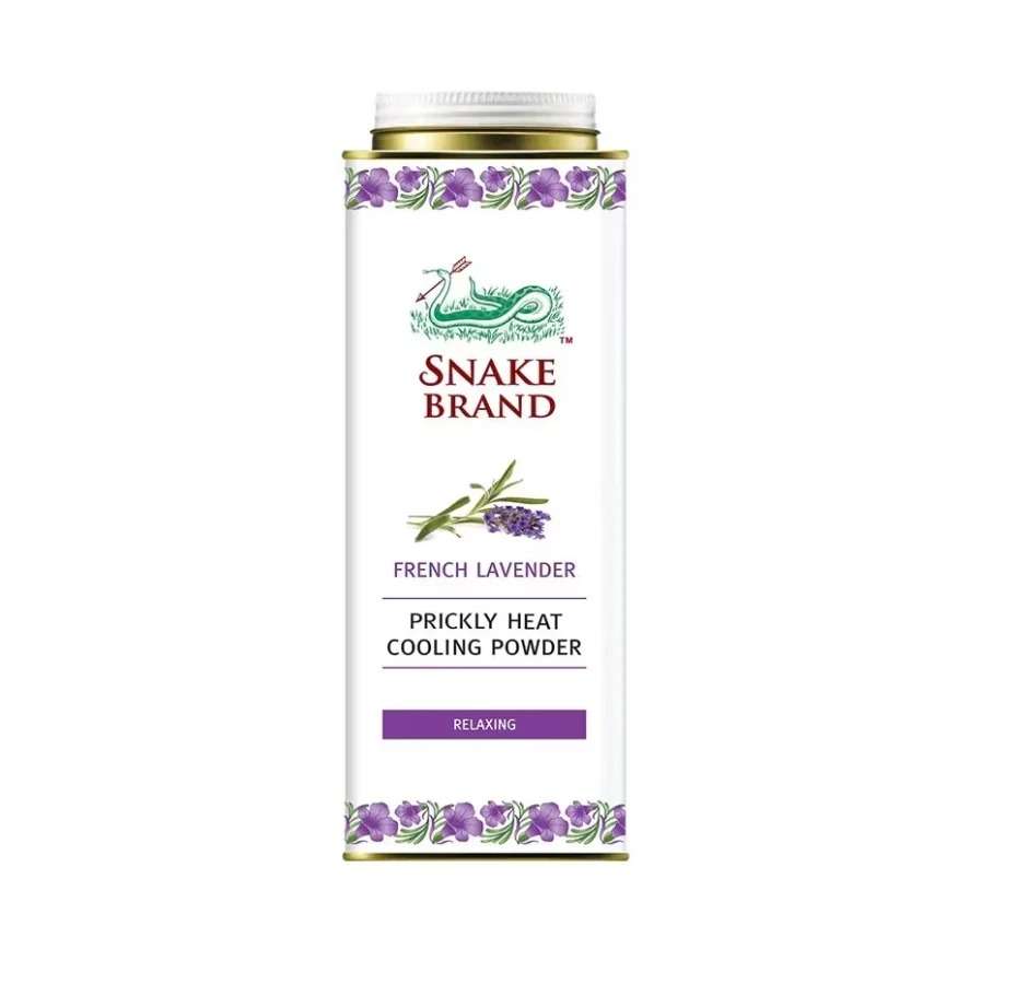 ✔ Instant Cooling Sensation. Snake Brand talcum powder is specially formulated to keep you cool and immediately refreshed. It has anti-sweat and friction defence to keep you fresh and dry during hot weather conditions.