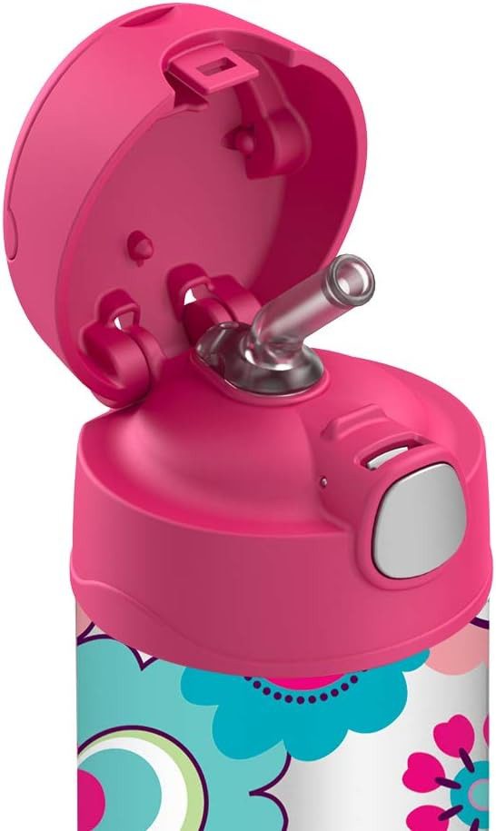 Thermos Kids Funtainer water bottles. Great to keep your kid’s drinks cool for up to 12 hours. Virtually unbreakable stainless steel 355ml hydration bottle with easy push button flip-up lid and integrated soft straw. Made from BPA free materials, ideal for using in the car, school lunches or home.