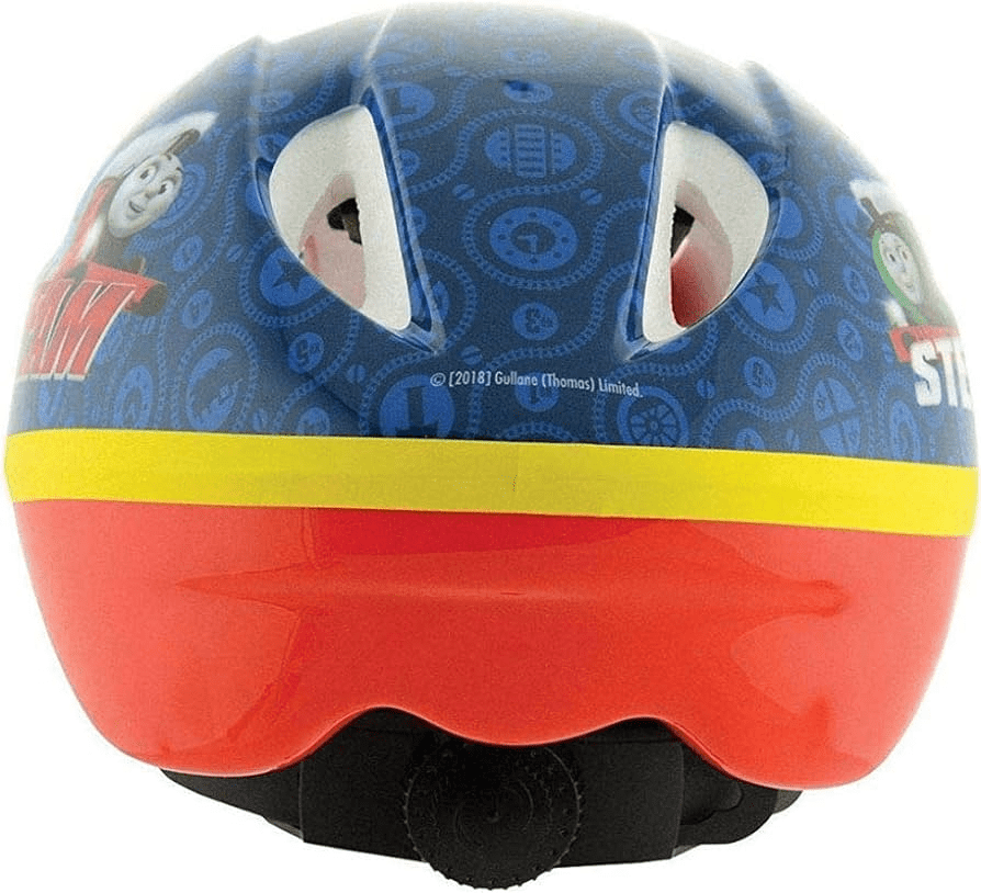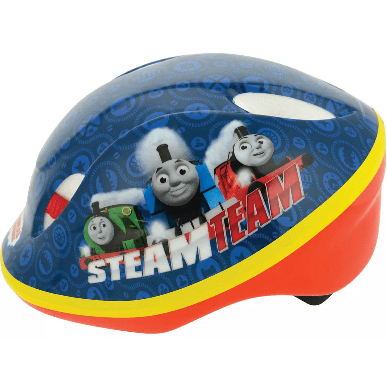Thomas safety helmet ideal for cycling, skating and rolling. Decorated with character favorites, Thomas, James and Percy With adjustable dial from 48-54 cm. Quick release buckle. Adjustable straps, ventilated shell, removable foam padding for adjustable comfort and fit. Lightweight EPS interior. All-over character print fits a head circumference of 48-54 cm