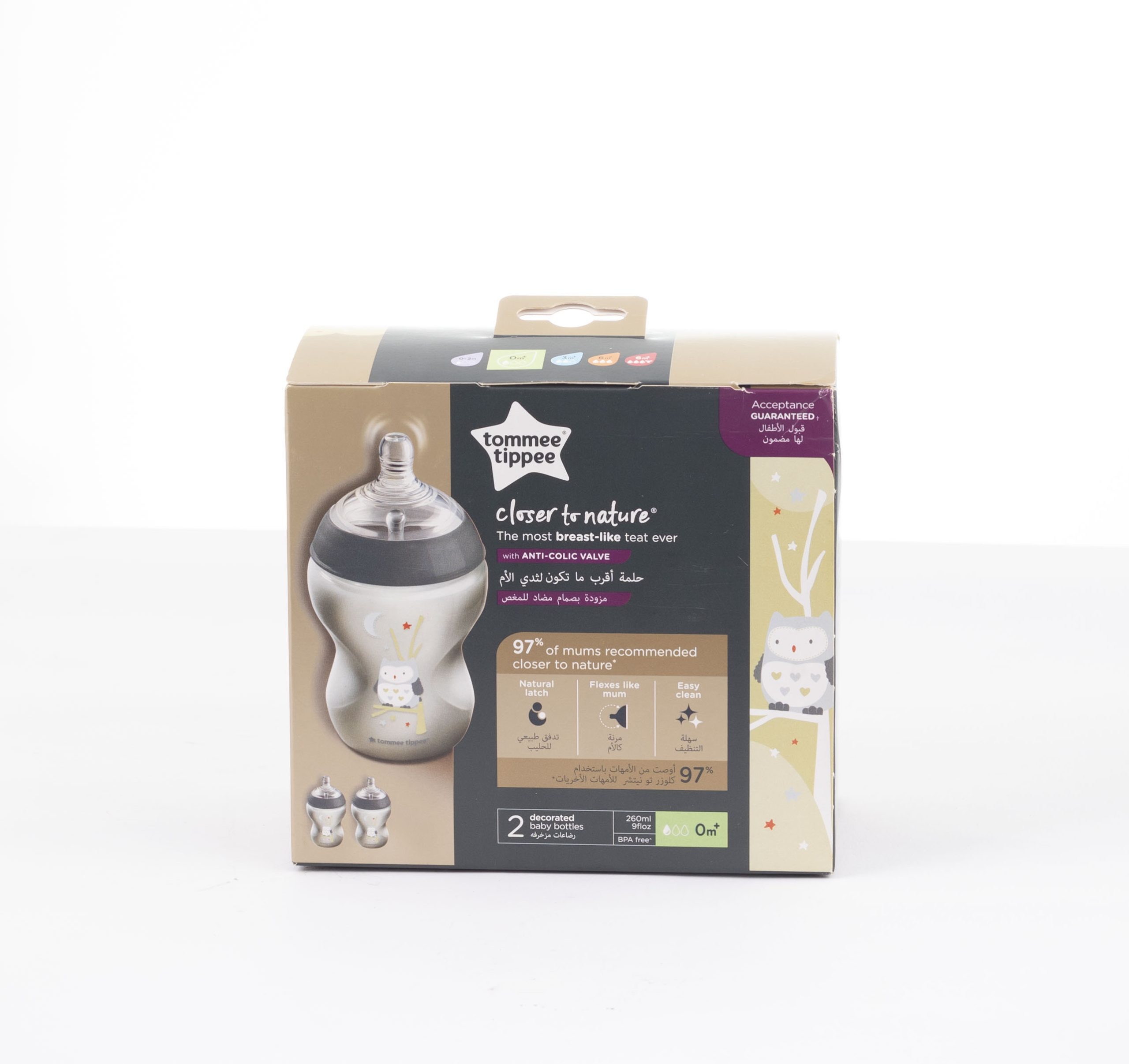 Tommee Tippee award-winning Closer to Nature bottle features an extra wide teat for easy-latch-on. The soft silicone teat flexes and gently elongates for a comfortable feed.