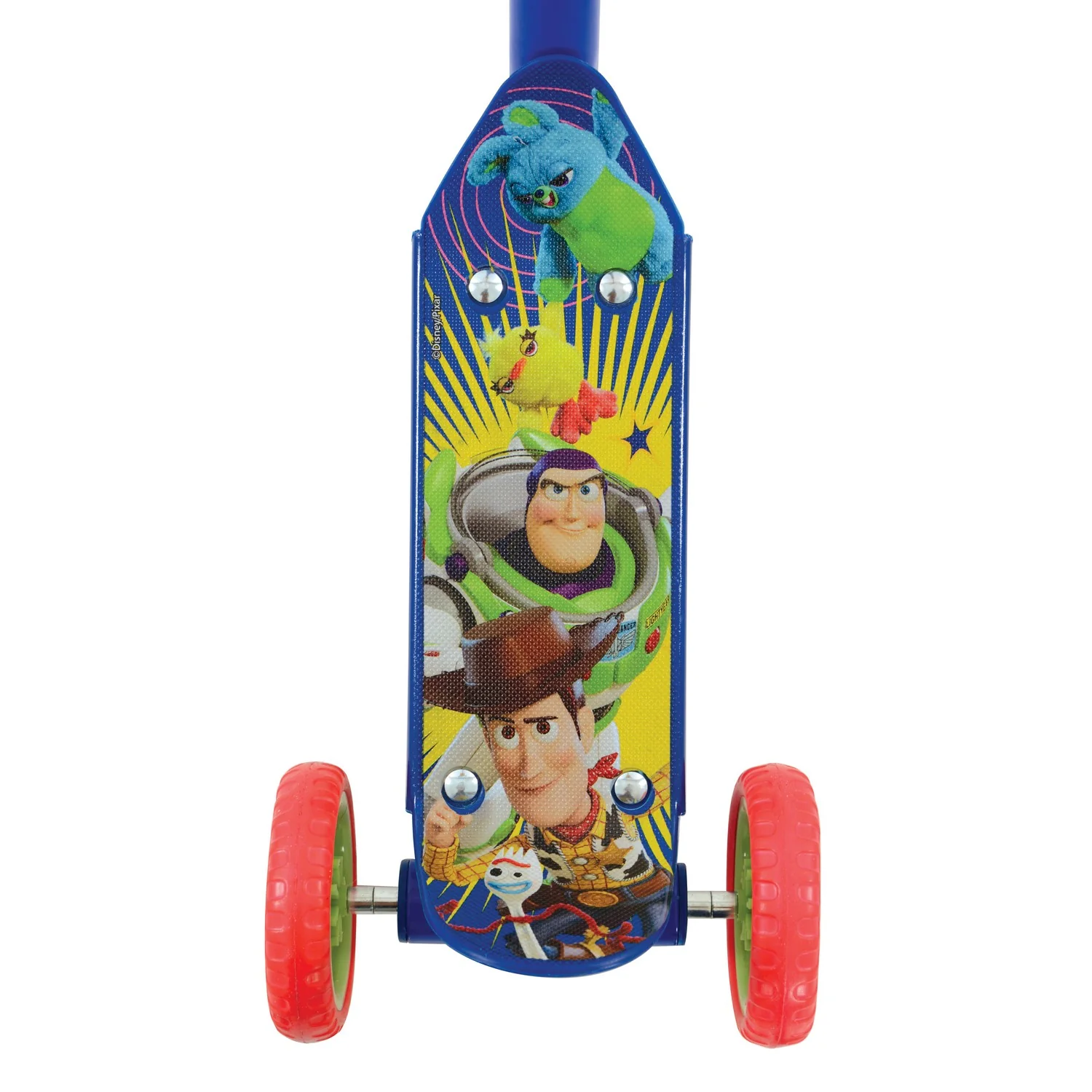 An ideal first scooter for any little toy Story fan, The Deluxe tri-scooter boasts an array of features. The fully printed anti-slip foot plate not only ensures safety but features character favourites such as Woody, Buzz and jessy. The wheels are all constructed from wide puncture proof tyres with deep tread ensuring Both optimal grip but stability for riders getting the hand of scooting. For additional safety and Durability, The forks are protected and the rear axles are covered to prevent injury. The handlebar adjusts in height as riders grow and sports a custom shapes character plaque. Suitable for riders up to 20kg