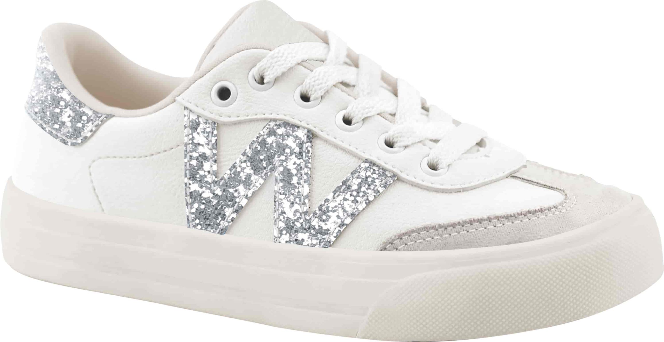 Step into style with World Colours tennis shoes! Perfect for active girls, these off-white and silver sneakers blend fashion and function seamlessly.